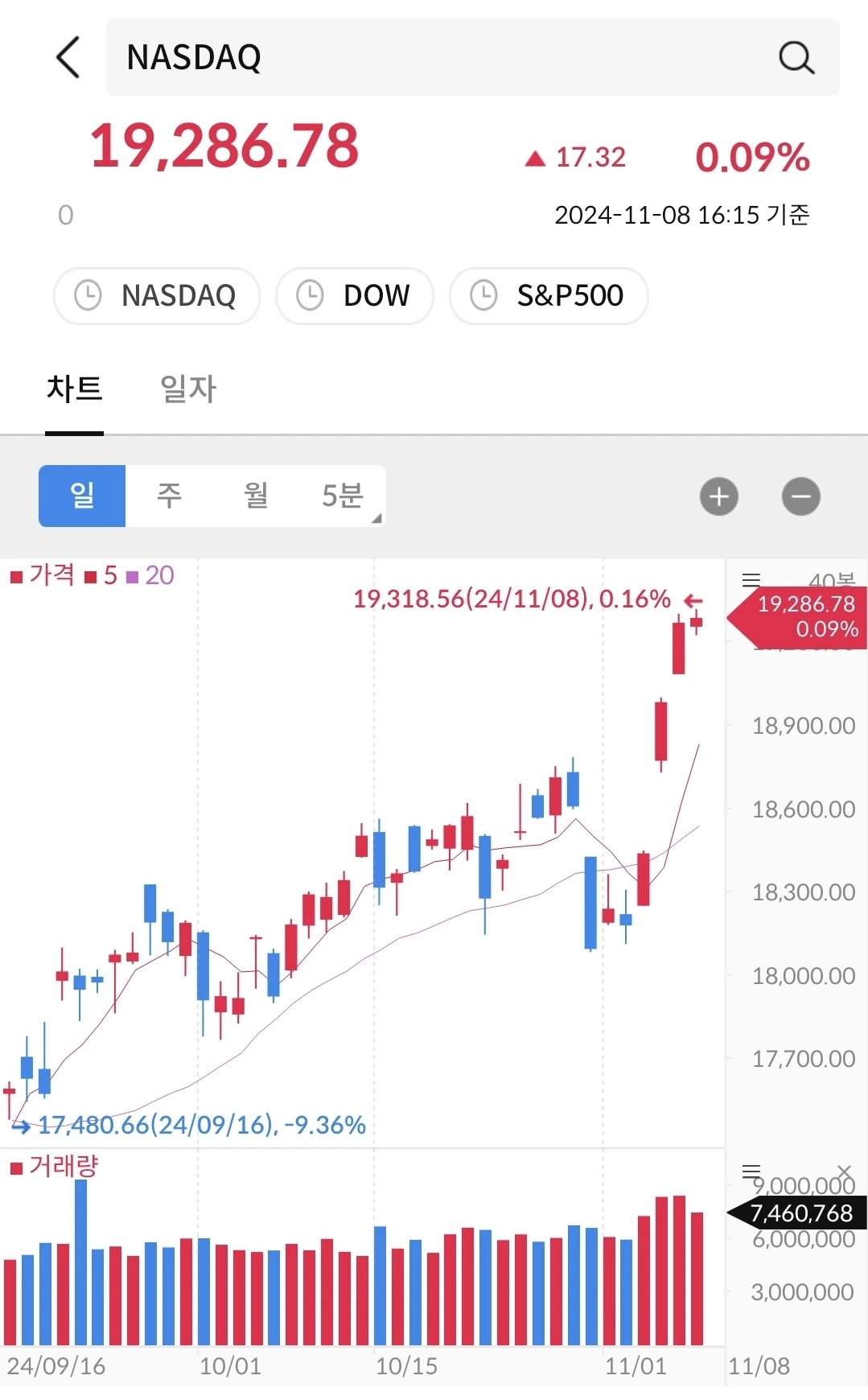 다우지수와는 다르게 매일 크게 상승했다. 대선 후 상승 그리고 금리인하 후 또 상승.