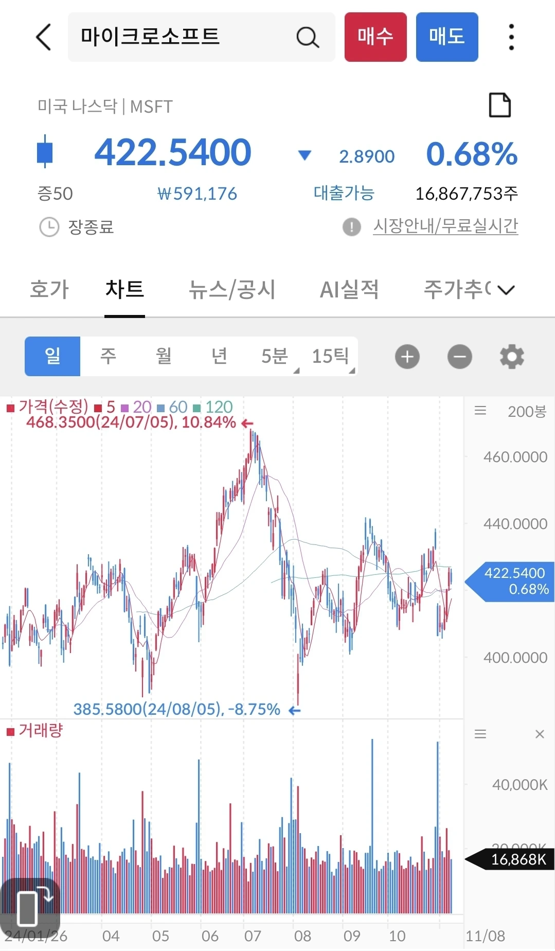 지난 몇주간 마소를 분할 매수했다. 그동안 계획했었는데, 이번에 실행을 했다. 3년 뒤의 마소를 생각하면서 꾸준히 분할매수 해 볼려고 한다. 마소가 인공지능으로 돈을 벌 수 있는 시스템을 만드는 중이다. 아마도 미래에는 마소가 그 중심에 있을지도 모른다. 내 마음대로 가치와 의미를 부여 중이다.