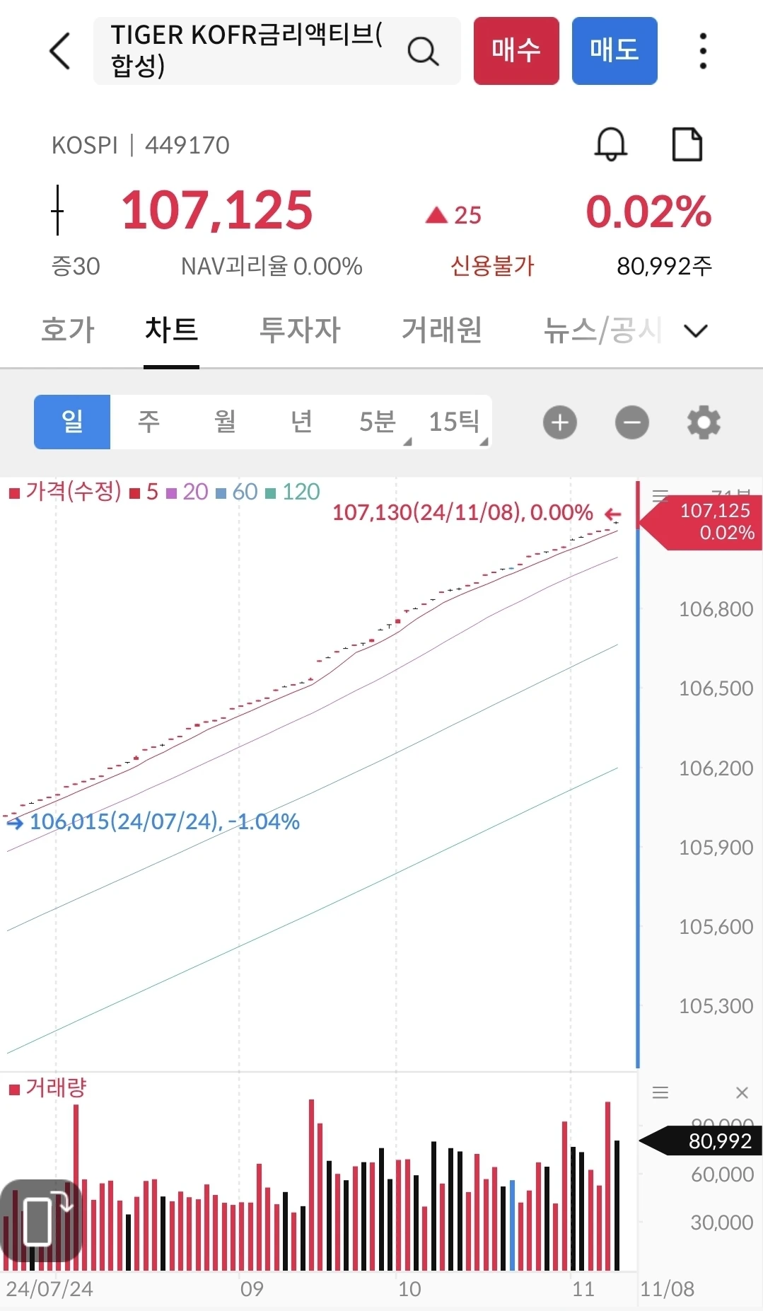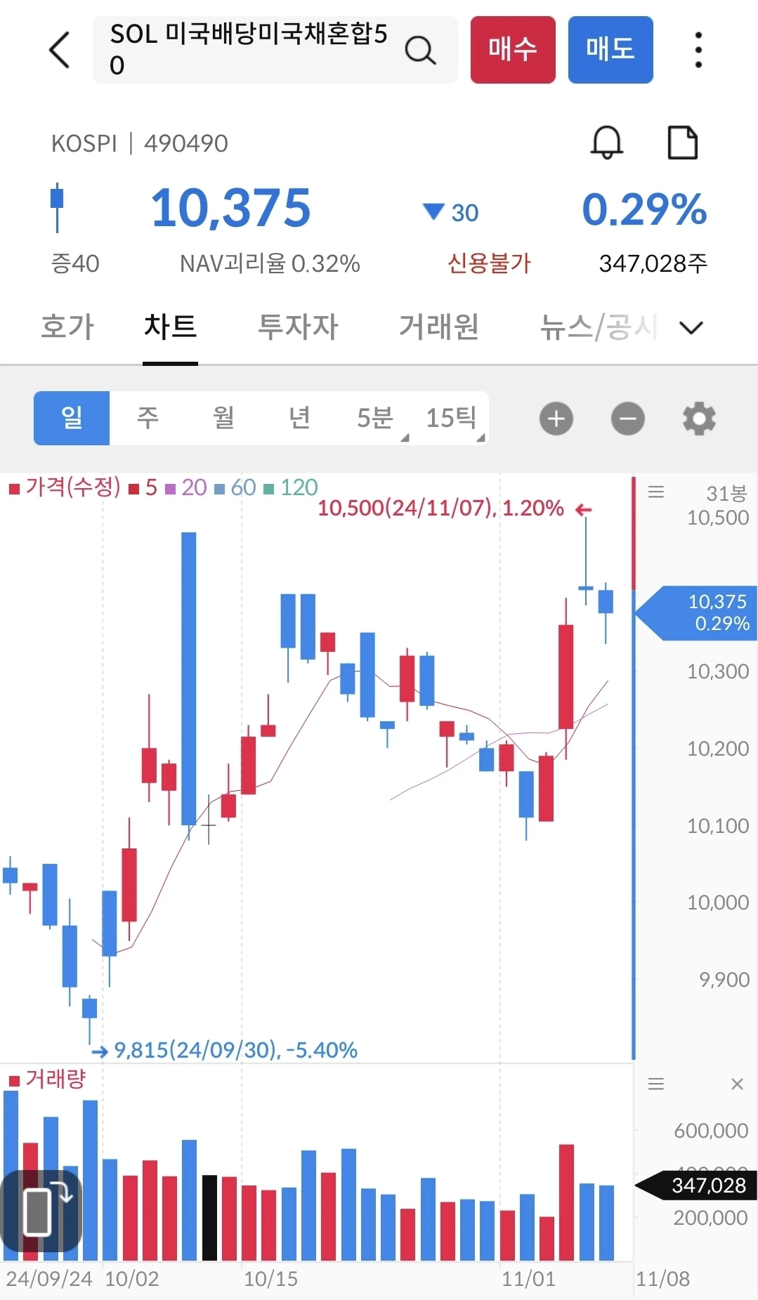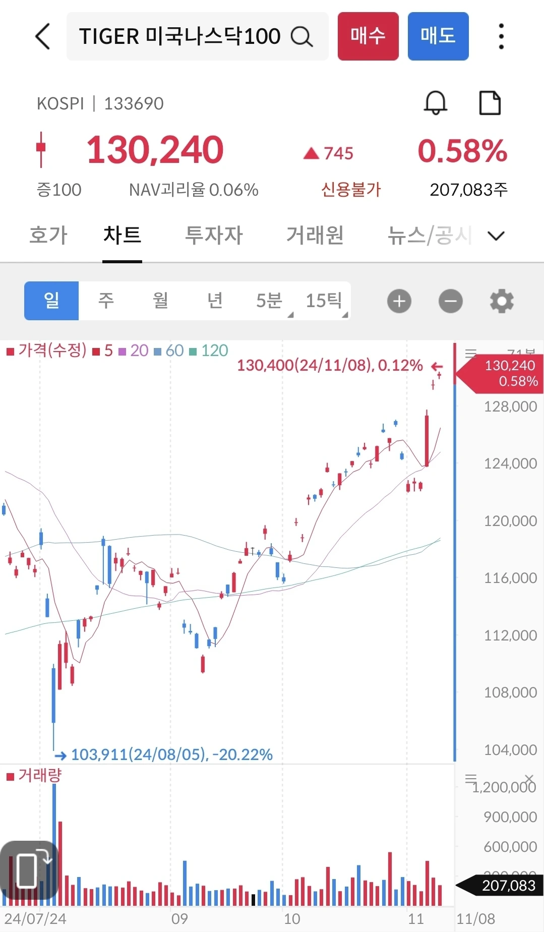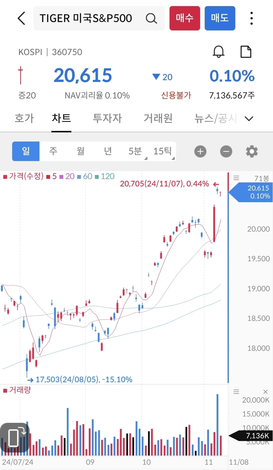 금요일에 무지성 매수를 해야 하는데, 업무가 바빠서 매수 못했다. 차주 월요일에 매수하자.