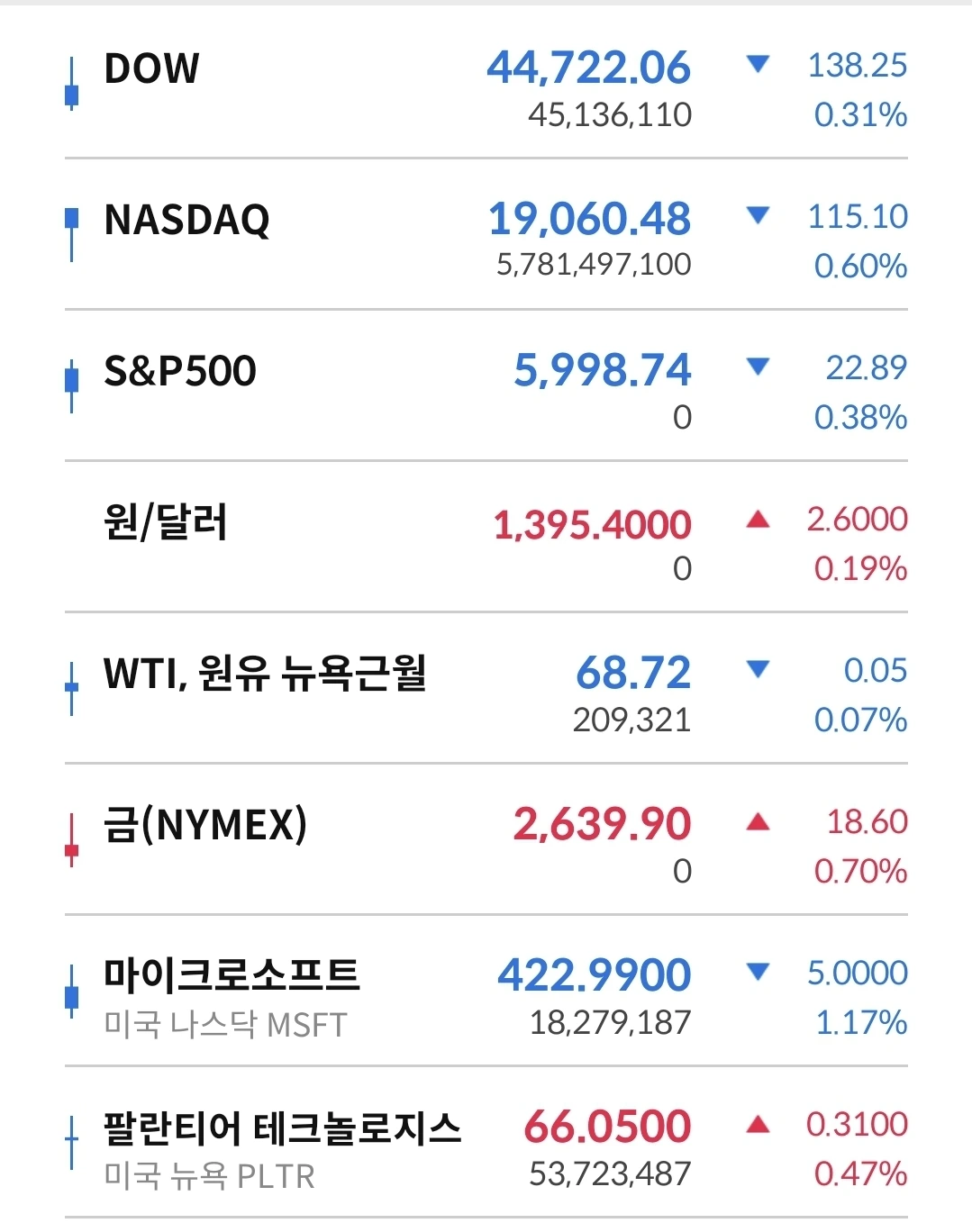 동반하락 마감