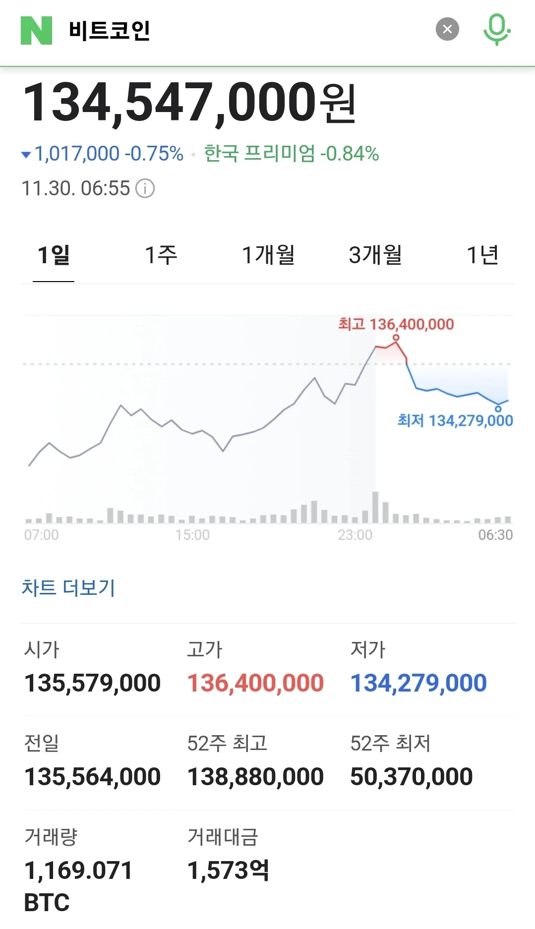 11월 마지막 거래일에도 1% 넘게 하락