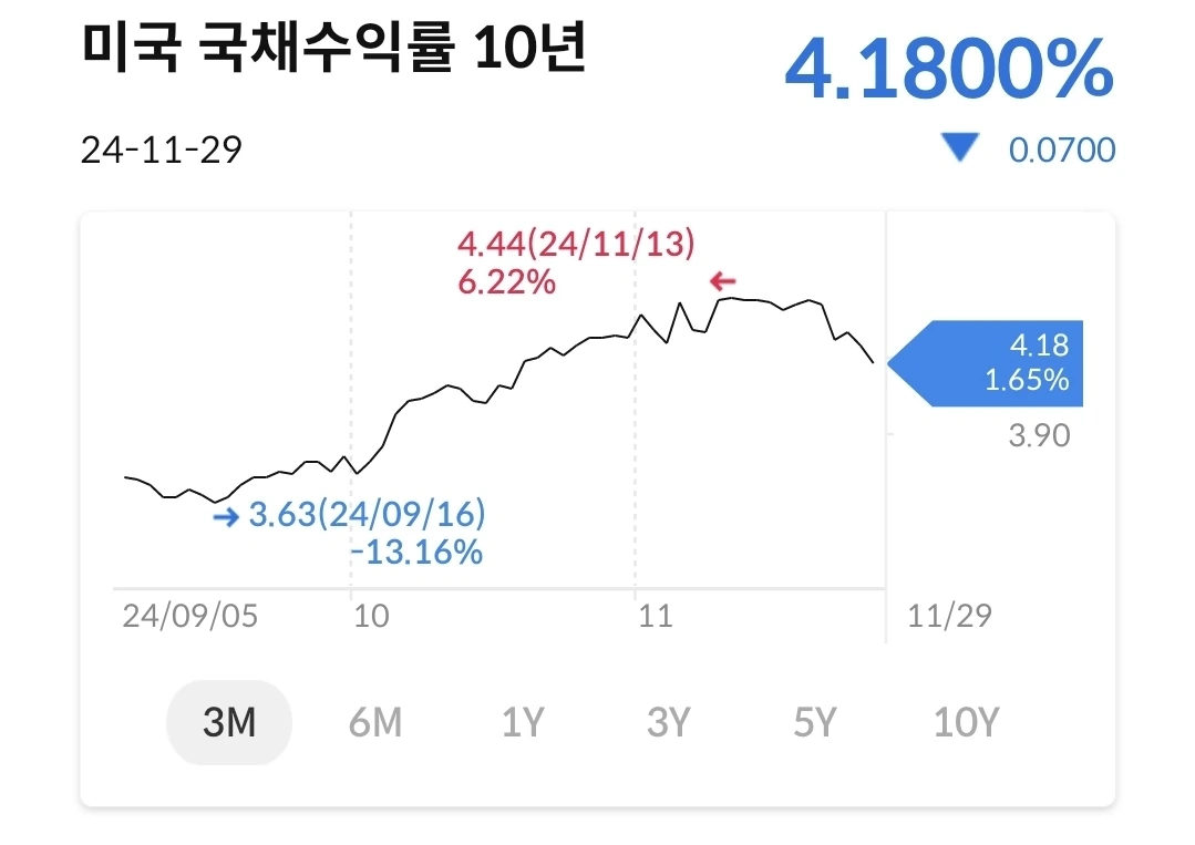 이번 주는 미국의 큰 명절인 추수감사절이 있어서 주식시장은 3일정도 운영했는데, 이 시기에도 계속 상승했다. 결국 다우와 S&P500은 최고점을 찍었다. 아직도 시장에는 왜 올라야 하는지에 대한 호재가 계속 나오고 있다. 주식은 결국 사람들과의 심리게임인데, 호재가 있으니 시장 참여자들은 더 오를 수 있다는 기대감에 계속 돈을 증시에 푸는 것이다. 이미 고점이라고 생각했는데, 아직도 더 오를 수 있는 재료가 시장에 남아 있고, 12월에도 금리인하라는 소재도 남아 있다. 이제 정권도 바뀔 것이고, 당분간은 지속되지 않을까.
