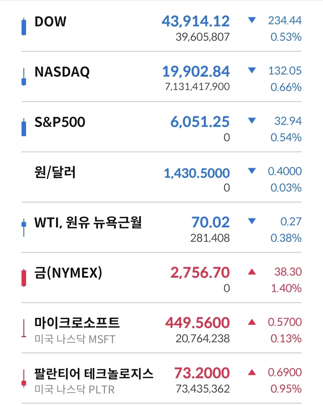 뉴욕 3대지수 일제히 하락