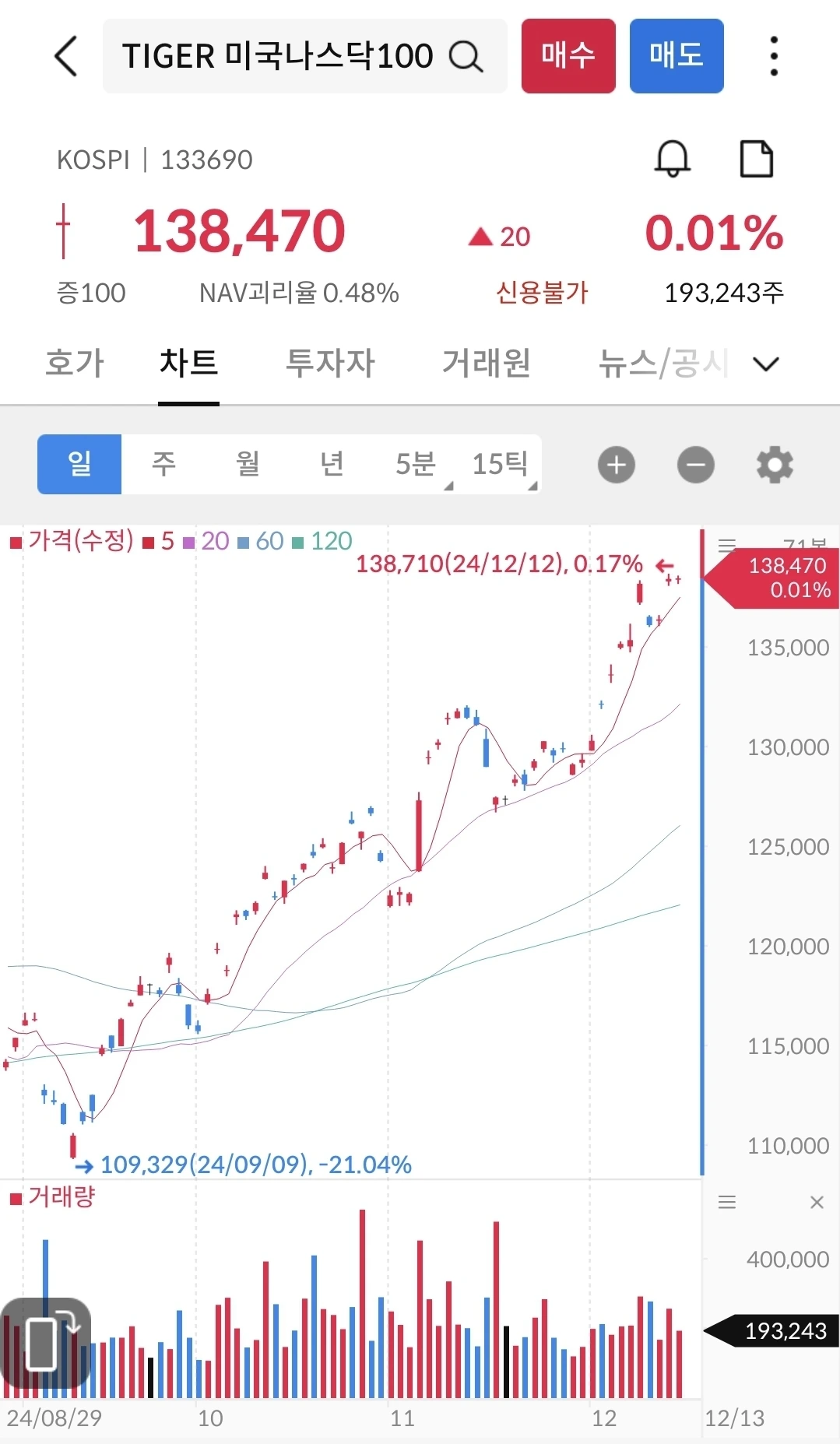 미국지수와 동일하게 국내ETF도 동일한 실적을 보여줬다. 비상계엄 선포 후 환절하로 인해서 떨어질 줄 알았는데, 다행히 미국 지수가 더 많이 오른 듯 보인다. 나스닥과 S&P500은 지속 상승 중이고, 다우지수는 소폭 조정하는 듯 보인다. 그래도 모든 지수가 우상향 중이다.