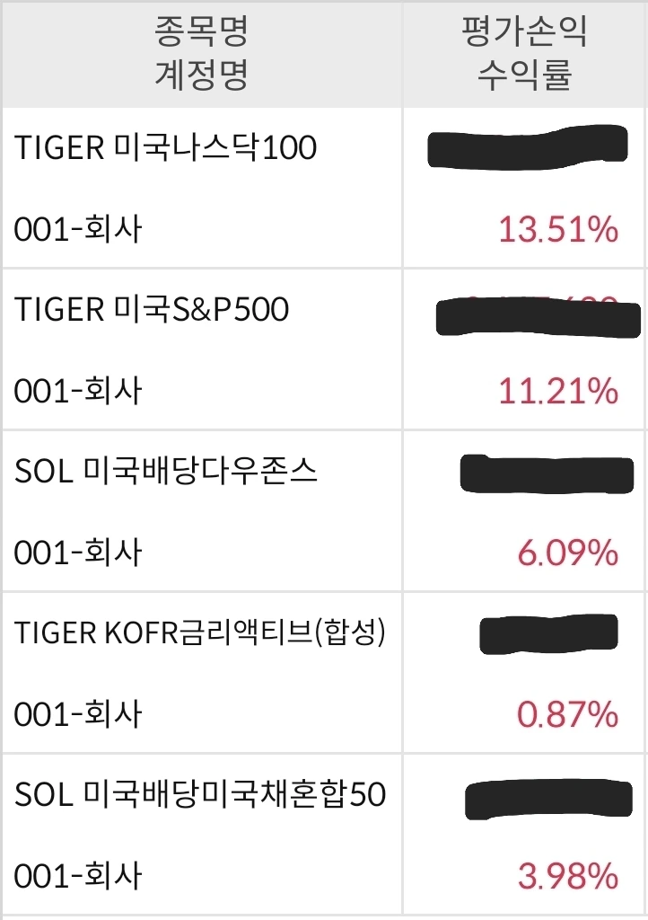 지난 주와 비슷하다. 종목별 차이는 있으나, 전체적으로는 큰 차이가 없다. 환차이가 반영된 것으로 생각된다. 당분간은 이 흐름이 이어질 것 같다. 꾸준히 분할매수 하면서 전체 흐름을 지켜보자