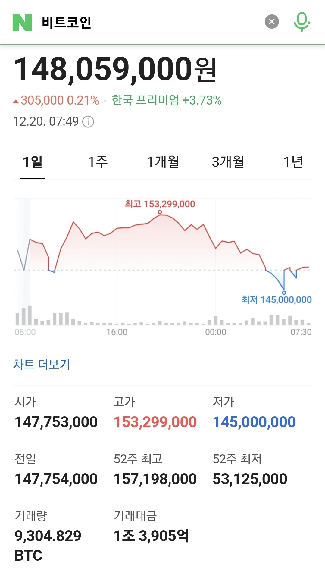 비트코인, 한 때 1억4천5백만원까지 밀려