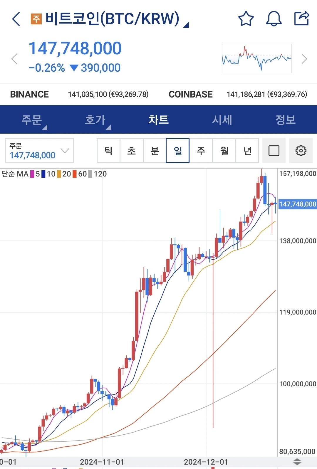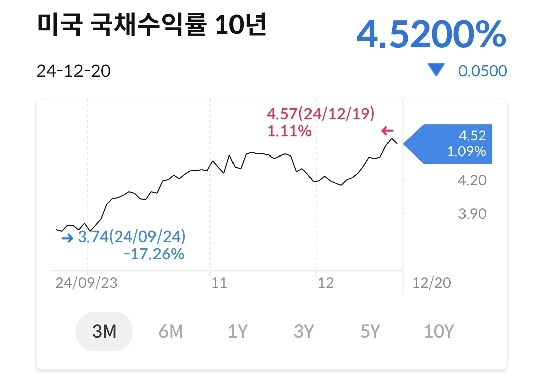 하락했으나, 워낙 많이 올라서 크게 하락한건지 아닌건지 알 수 없는 상황이다. 트럼프 2기 행정부가 출범해서 어떤 정책을 펼칠지가 우상향에 큰 영향을 줄 것 같다.