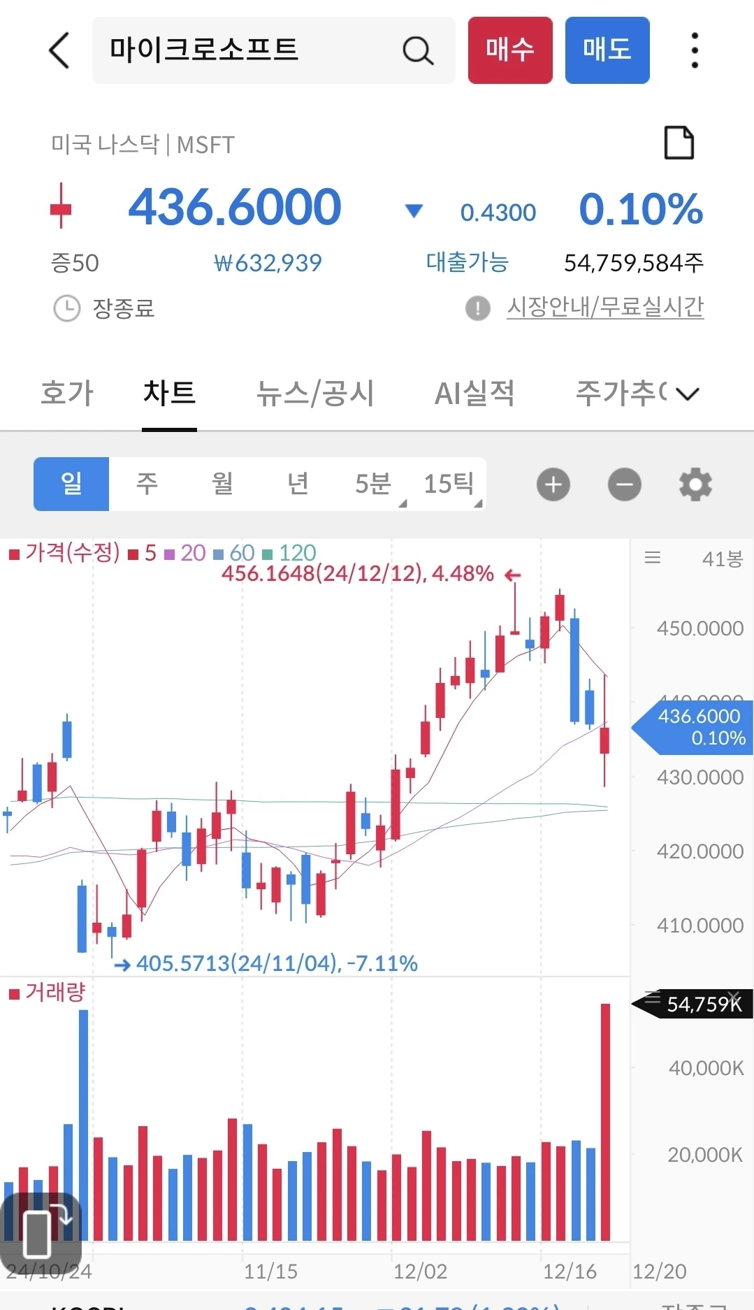 연준의 매파적인 발언에 하락하더니, 금요일에 소폭 상승했다. 마소는 등락을 반복하면서 정체된 느낌이다. 지켜 보면서 기다려 보자.