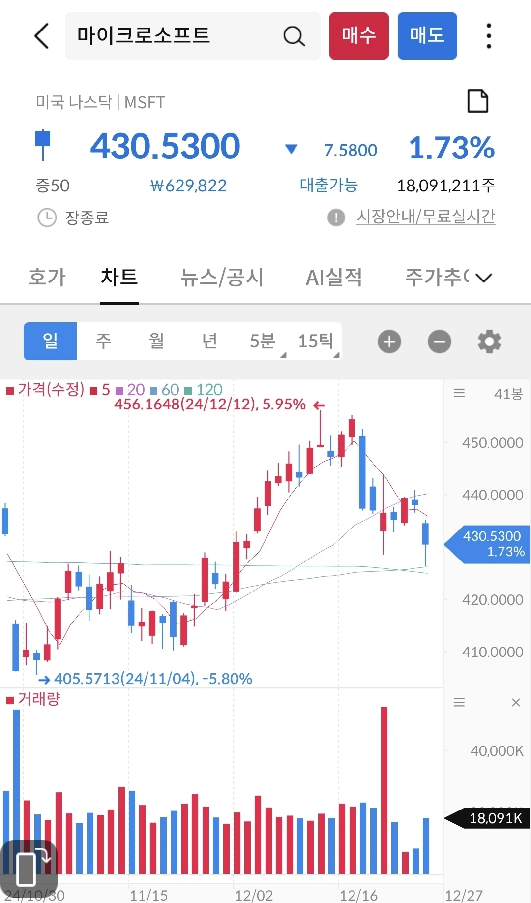 마소는 애플과 다르게 등락을 반복 중이다. 서서히 우상향 중이라서 지금 사모으기에 좋은 주식이다. 꾸준히 분할 매수를 했더니, 현재 평단가 415불이다. 돈이 생길 때마다 분할 매수할려고 한다. 단가가 높아서 많이 살 수도 없는 것이 나에게는 좋다. 1주 사기 위해서 돈을 모아야 하기 때문이다. 2028년까지 50주를 모아 볼려고 한다. 아직 갈 길이 멀다.