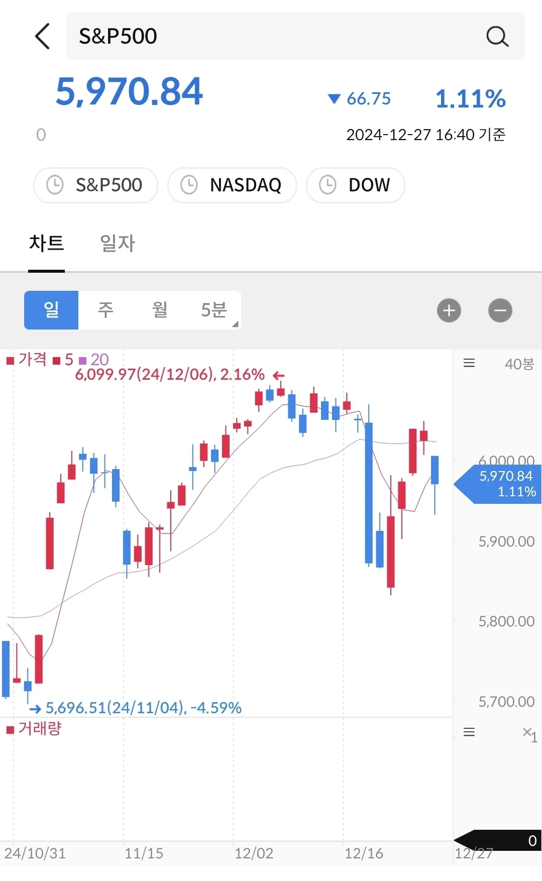 12월 6일에 6천을 넘은 후에 다시 6천을 바라보면서 달리는 중이다. 신년에는 6천을 넘어서 계속 신기록을 경신하지 않을까 생각된다. 등락은 있지만, 우상향 중이다.