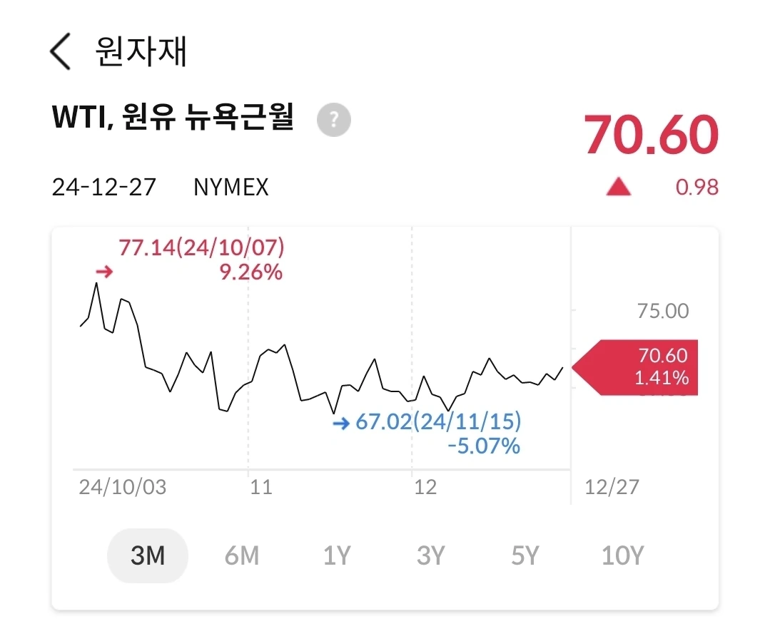 유가는 60불과 70불대 초반에서 등락을 반복 중이다. 공급이 수요보다 많다는 인식으로 쉽게 가격 상승으로 이어지지 않고 있다. 유가가 이렇게 안정적으로 움직인다고 하면, 인플레이션 관리에는 도움이 될 것이다. 하지만, 중동 전쟁은 아직 끝나지 않고 이스라엘이 지속적으로 이란을 괴롭히는 중이다. 언제 끝날지가 관건이다.