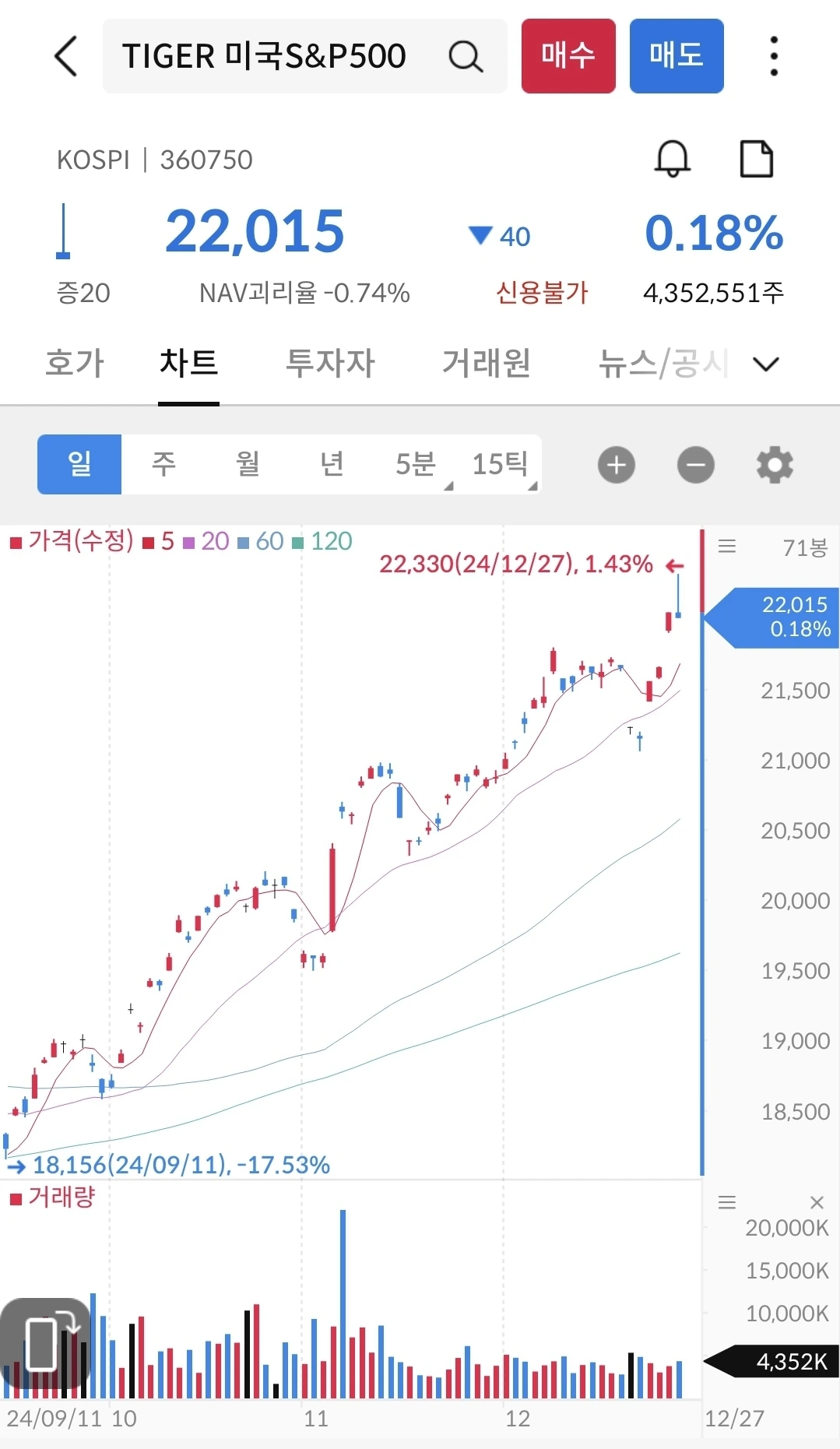 퇴직연금계좌는 안전자산 30% 룰이 있어서 정기적으로 리밸런싱을 해줘야 한다. 하지만, 올해는 아직 리밸런싱을 한 번도 하지 않았다. 대략적으로 30%룰을 지키면서 자산이 성장해 가는 듯 보여서 이다. 매주 금요일에 분할 매수를 하고 있는데, 내년 이맘때 끝날 것 같고, 그러면, 내년 6월쯤 리밸런싱을 하면 될 것 같다.