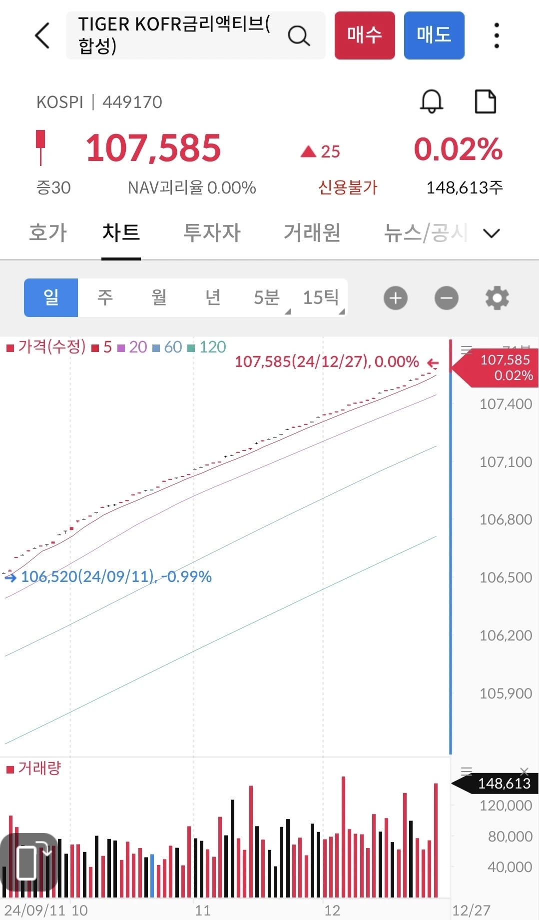 매일 0.02% 오르는 느낌이다. 그래서, 마이너스는 안되니, 불안하면, 미국채 25%, 금리액티브 5% 나눠서 사도 된다. 그러나, 지금은 미국채 30%가 더 좋아 보인다.