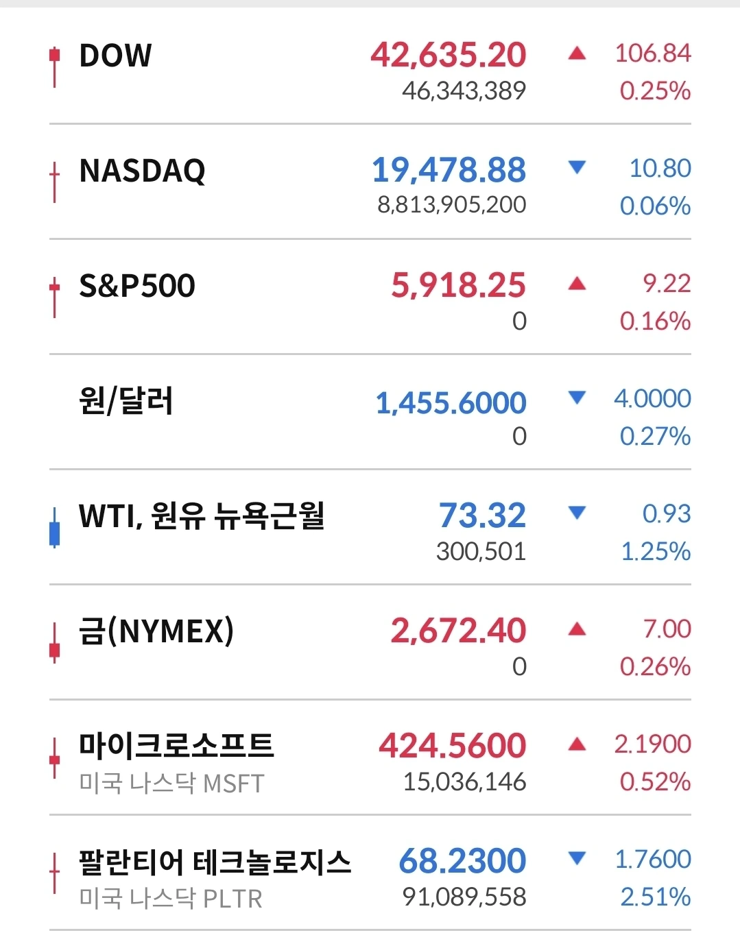 간밤에 팔란티어가 크게 하락