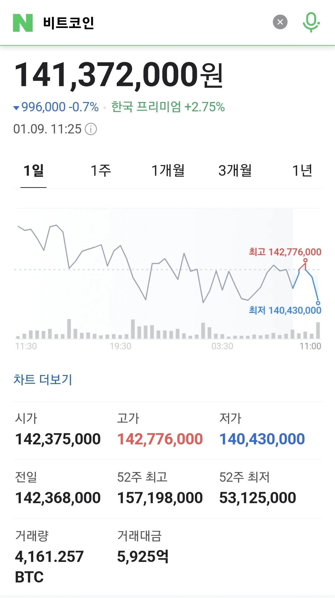 최근 며칠간 하락 하길래