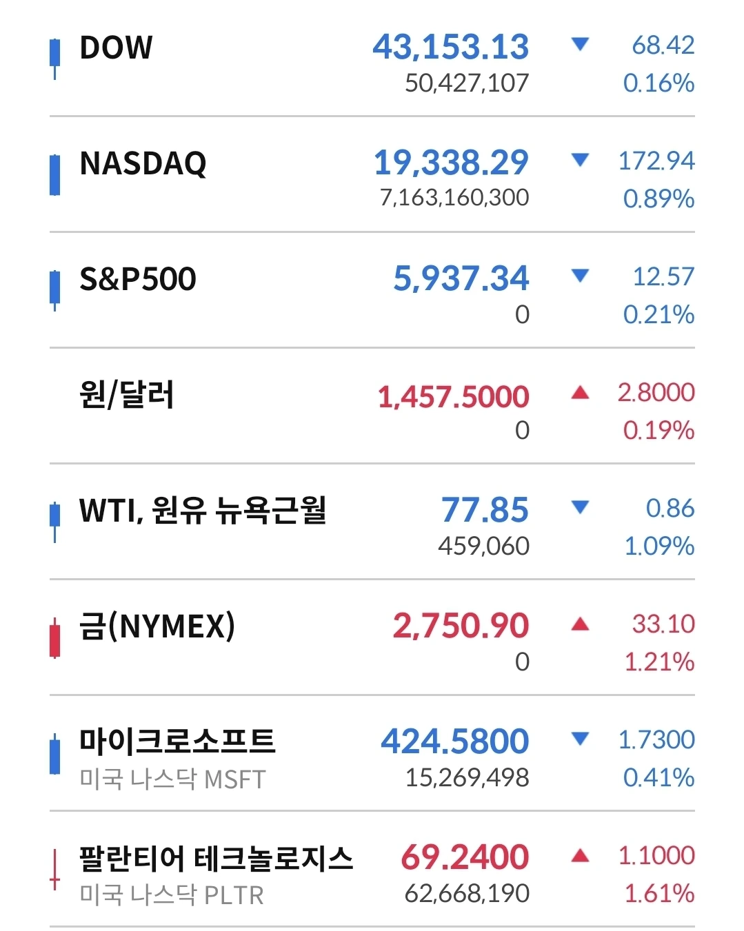 1) 3대지수 하락 마감