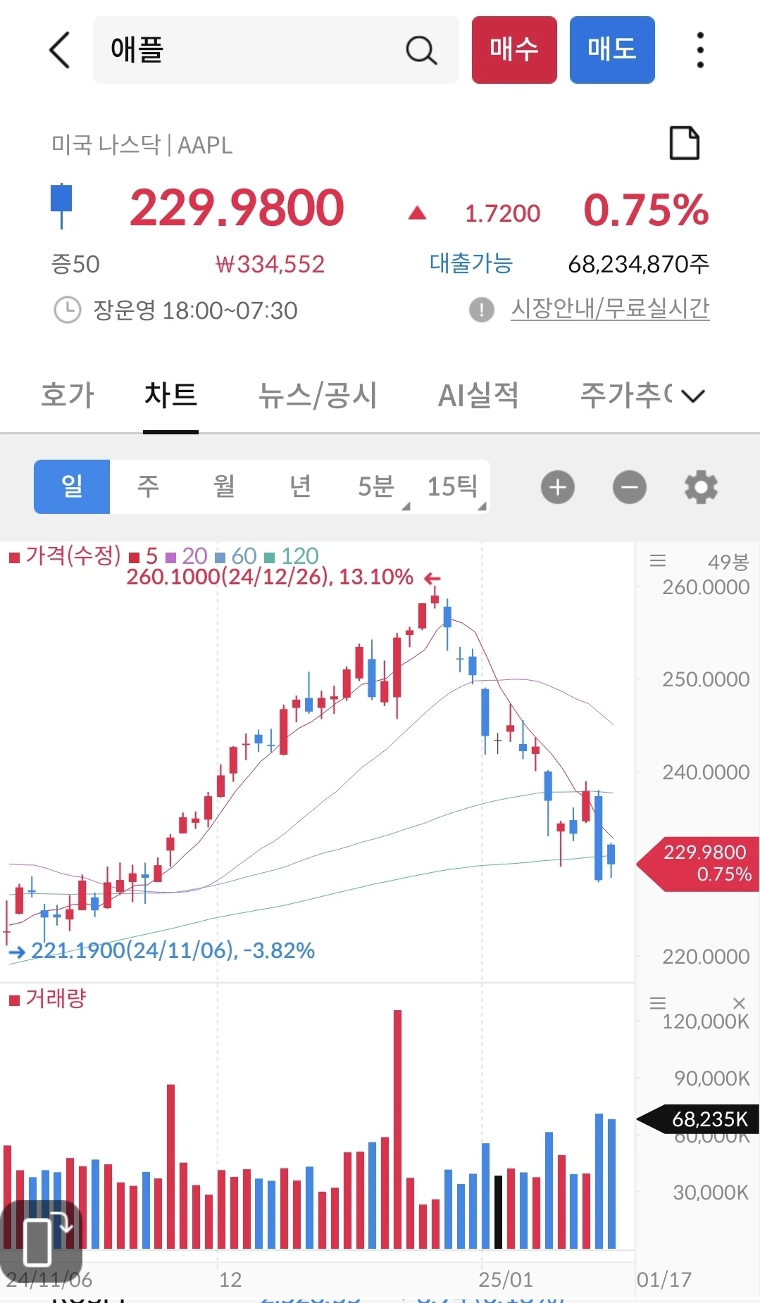 나스닥과 비슷한 등락을 반복했고, 나름 상승 마감했다.