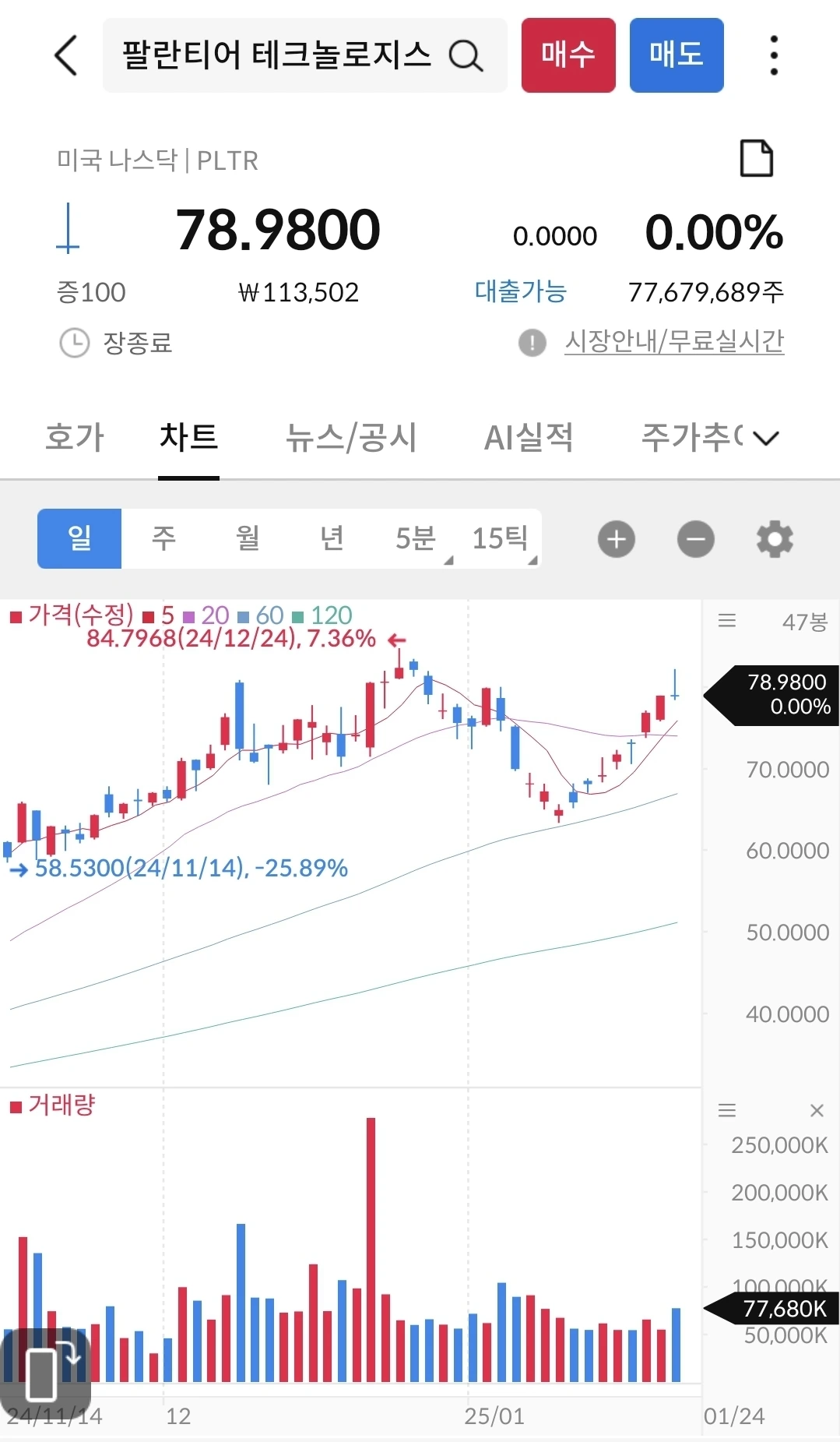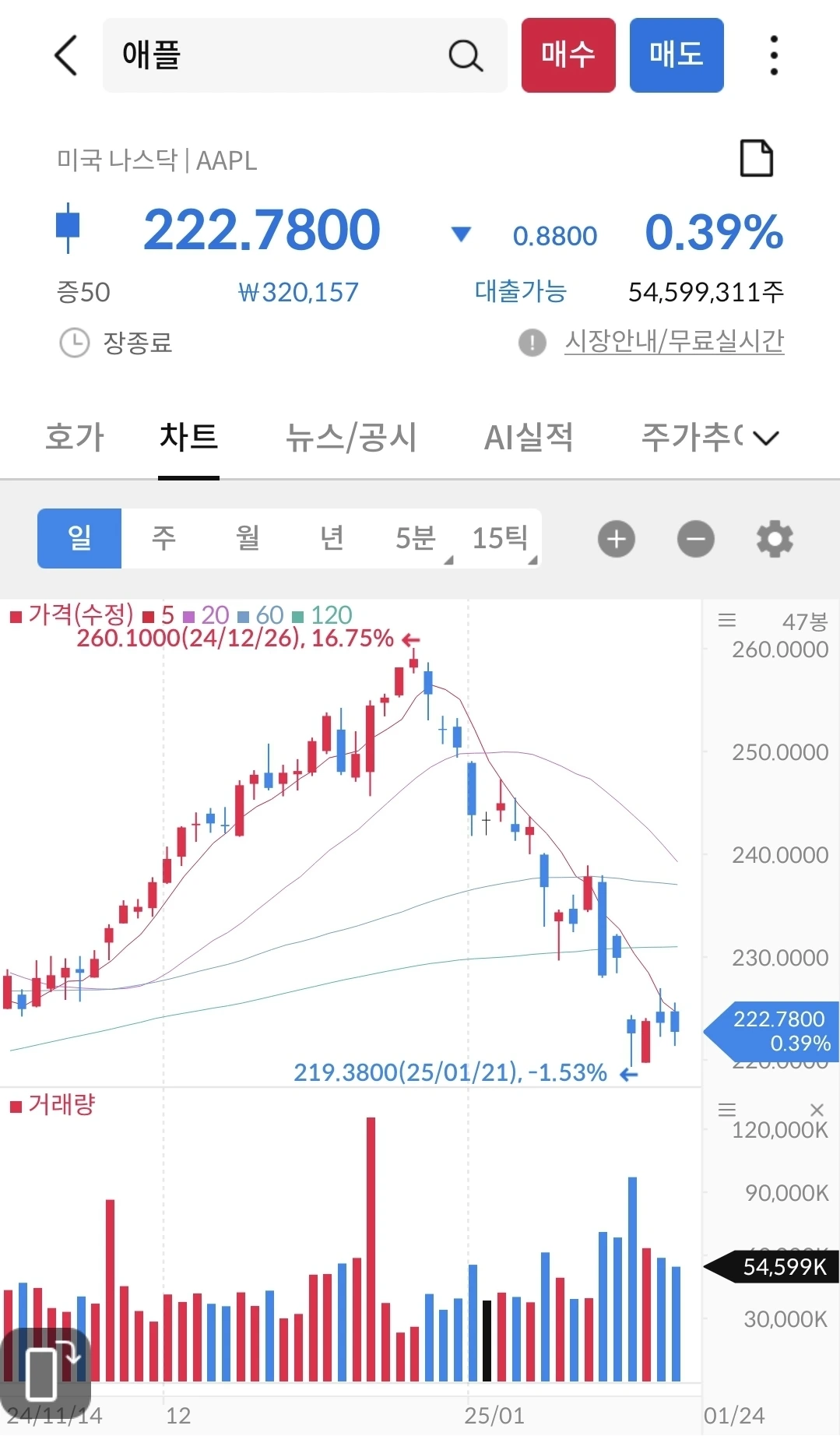 이번 하락 국면에서 분할매수를 통해서 주식 수량을 늘렸다. 시장에서 AI관련 뉴스가 나오면서 다시 상승 중이다. 기회가 또 오면 추가 매수를 추진할려고 한다.