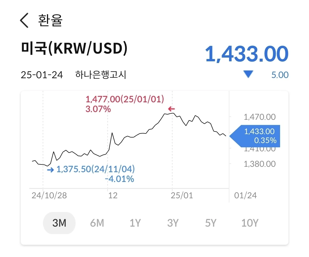 지난 주에 1477원까지 찍었던 환율은 급격히 안정화 되어서 1433원까지 내려갔다. 정부에서 연기금을 활용하여 적극적으로 시장 개입 중인데, 언제까지 환율을 유지할 수 있을지 모르겠다. 차주 미국 금리 방향에 따라서 출렁일 수 있다.