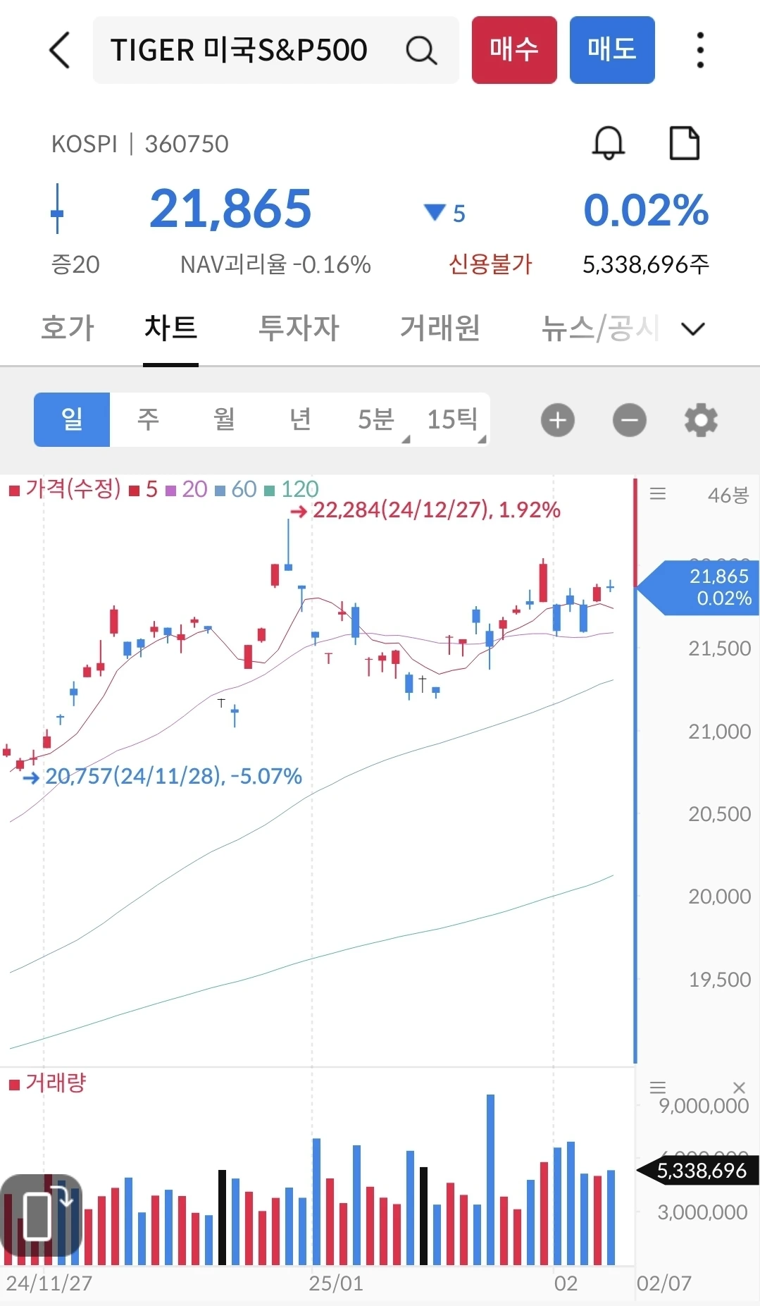 느리지만 상승 중이다. 조만간 다시 21월 24일 최고점을 찍고 갈 수 있을까 생각해 본다. 미국발 변수가 많아서 잘 모르겠다이다. 매주 무지성 매수 해야 하니까, 가격이 떨어지면 좋겠다.