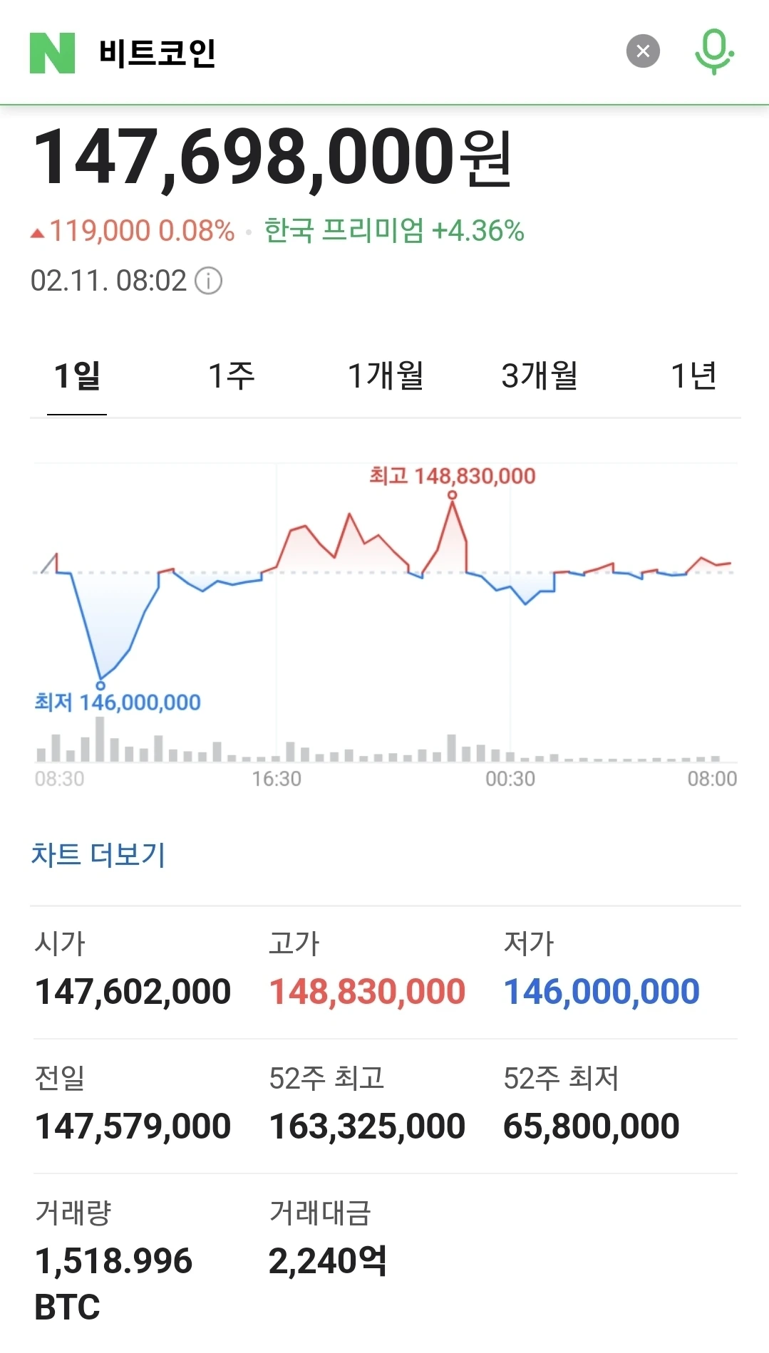 비트코인 김치 프리미엄이 8%에서 4%대로 하락