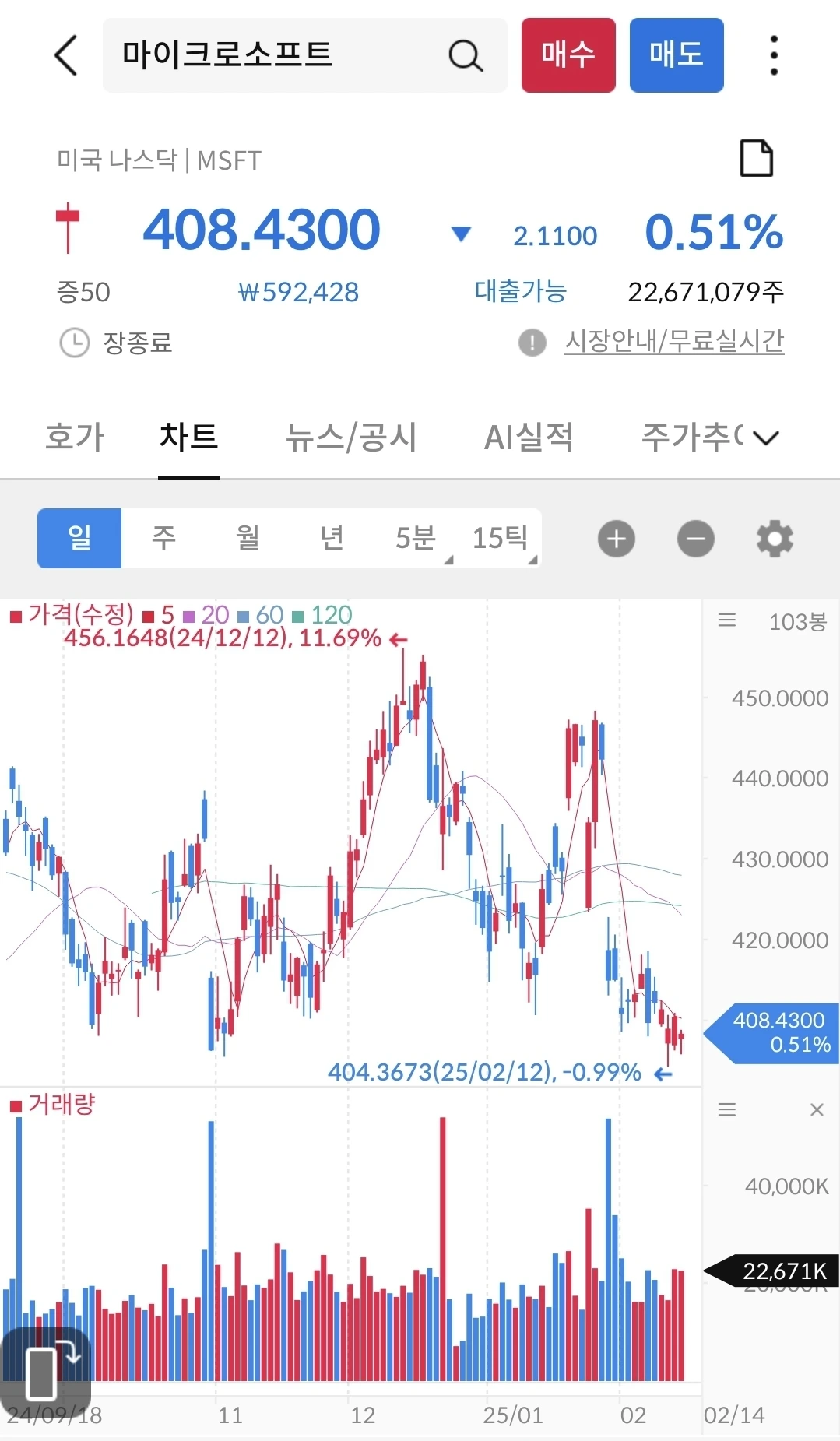 가격이 고점대비 많이 낮아져 있다. 분할매수 중이라면 지금이 사기 좋은 시점인 듯 하다. 장기적으로 보면 마소가 인공지능 솔루션에서 수익을 낼 것이라 생각이 든다. 여러가지 인프라 투자에 대한 매출 발생은 아마도 시간이 걸릴 듯 하다.