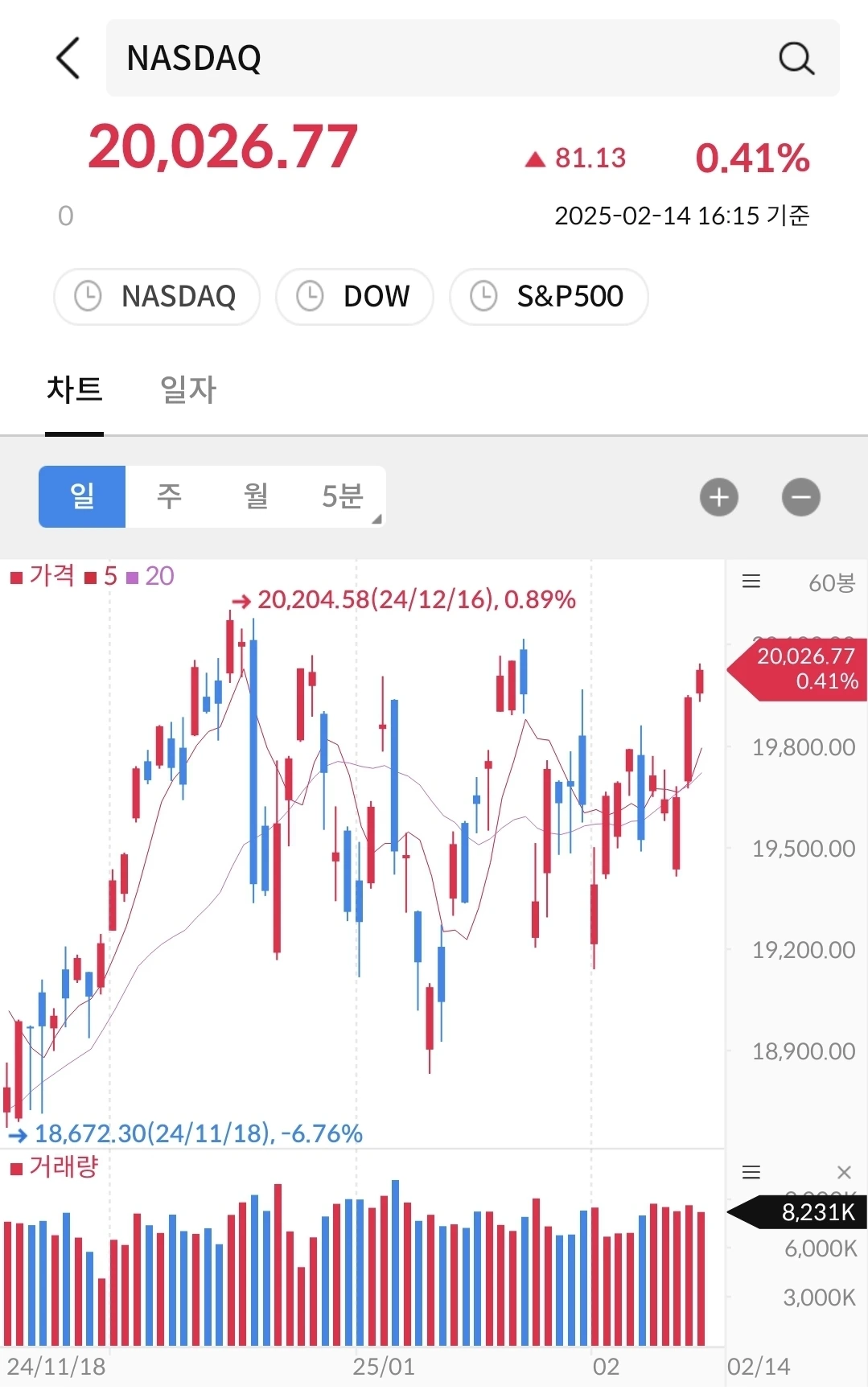 12월 중순이후로 트럼프 한마디 한마디에 등락을 반복하고 있다. 등락폭도 작지 않다. 큰 지수가 이렇게 크게 스윙을 해도 되나 싶을 정도이다. 그만큼 불확실성이 많고, 그렇게 때문에 시장에 지속적으로 반영되고 있다. 트럼프의 관세에 특히 많은 영향을 받는 듯 하다.