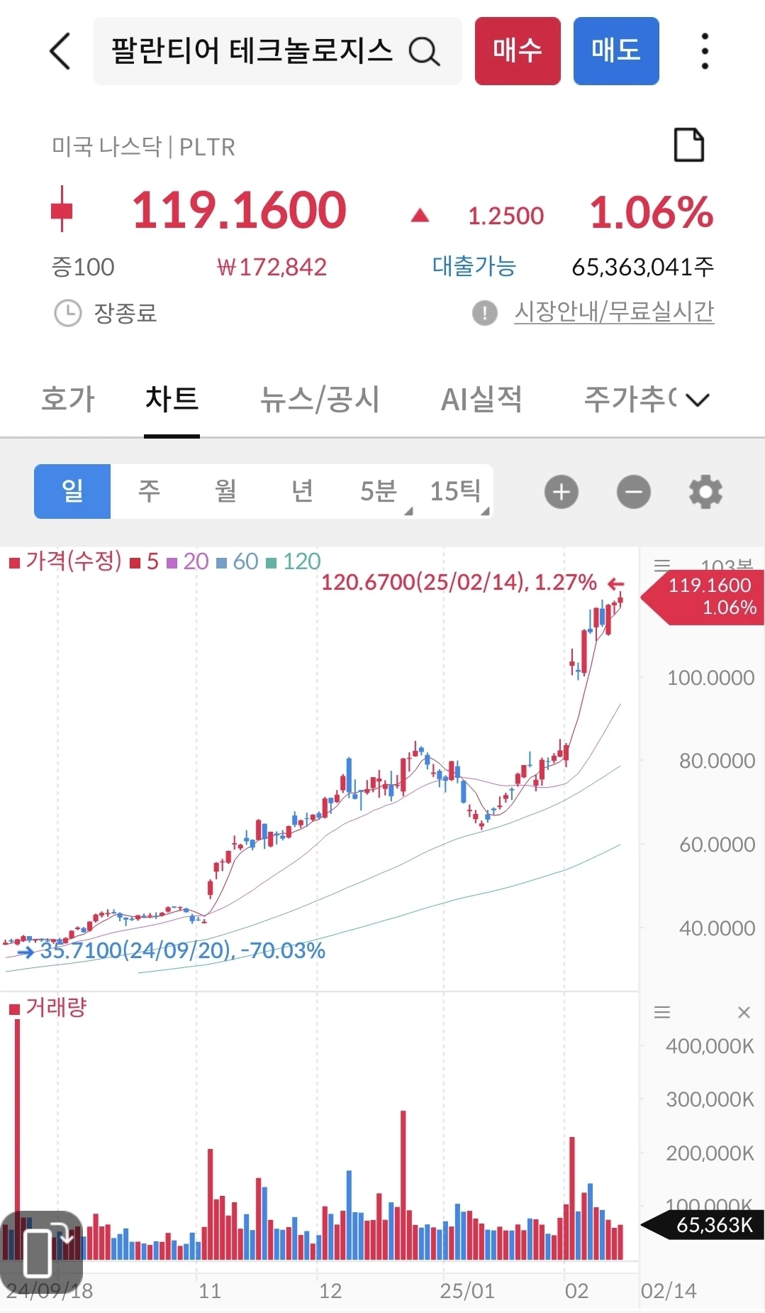 회사가 우크라이나 전쟁과 하마스 전쟁으로 더욱 탄탄한 솔루션을 만들었다. 전쟁에서 얻은 데이터를 바탕으로 일반 기업에도 적용할 수 있을 것이다. 앞으로 기업이나 정부에서 어떤 의사 결정을 할 때 필요한 솔루션을 제공하기 때문에 미래 가치는 충분히 있다고 생각이 드나, 이미 주가에는 그 이상 반영된 듯 하다.