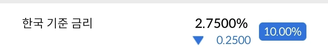 한은에서 경제를 살리기 위해서 금리를 인하 했다. 미국과의 금리차는 1.75%로 벌어졌다. 무슨 의미일까? 원화가 약세가 되고, 외국인 투자자들은 금리차이로 한국에 투자할 때 많은 고민이 필요하다는 뜻이다. 원화로 돈을 벌어도 달러로 환전해 가면 손해가 발생할 수 있기 때문이다.