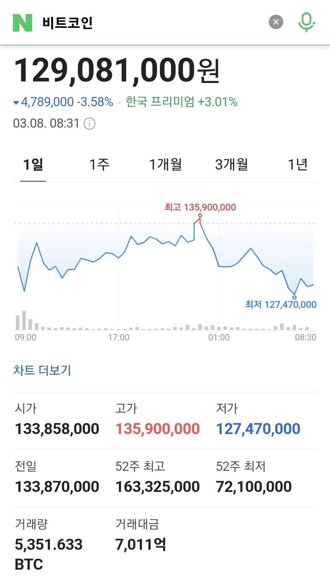 8만5천달러대까지 내려