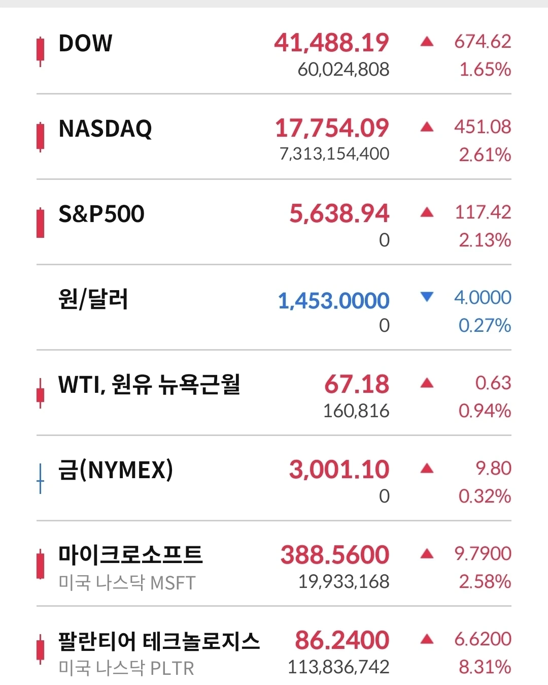 미증시 등락이 심함