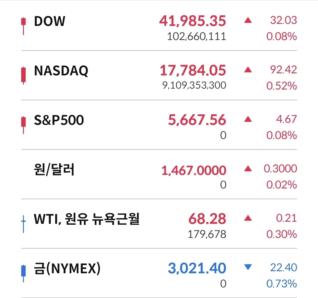 나의 경제일기는 미국 시장 중심으로 정리한다. 기본적으로 미국 3대 지수, 원달러 환율, 유가 흐름, 금가격 그리고 개별 미국 종목을 보고 있다. 이 중에 중요한 것은 미국 지수, 유가 그리고 원달러 환율이다. 내 자산에 직접적인 영향을 주는 중요한 지표이다.