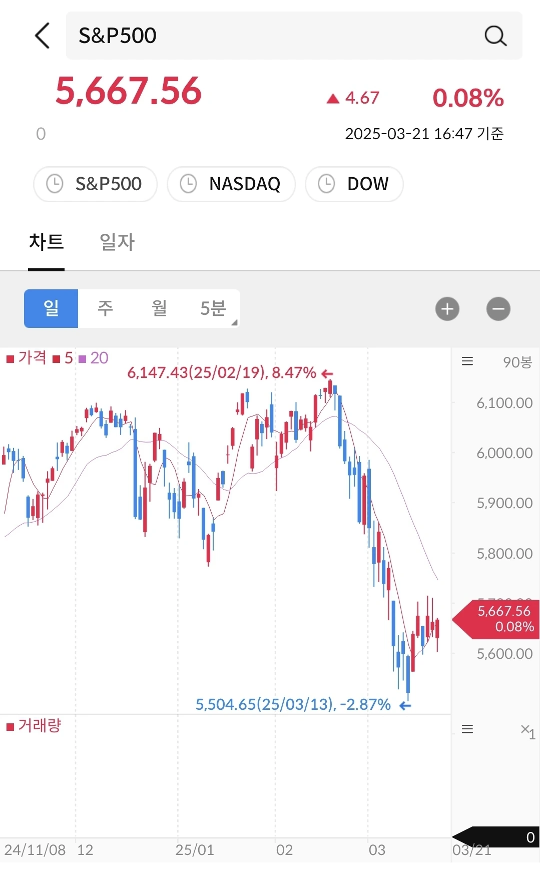 이번주 3대지수는 바닥을 찍고 올라가는 추세였다. 연준에서 발표한 금리동결이 큰 역할을 했고, 올해 아직도 2번의 금리인하 기회가 남았다는 점도표를 보여 준 것이 우상향으로 이끈 원동력이 아니었나 생각한다. 그러나, 실제는 트럼프의 관세 정책으로 인플레가 상승하게 되면 금리인하는 동결로 바뀌고, 경제지표가 더 악화된다면 결국에는 금리인상 이야기가 나올 수도 있다.