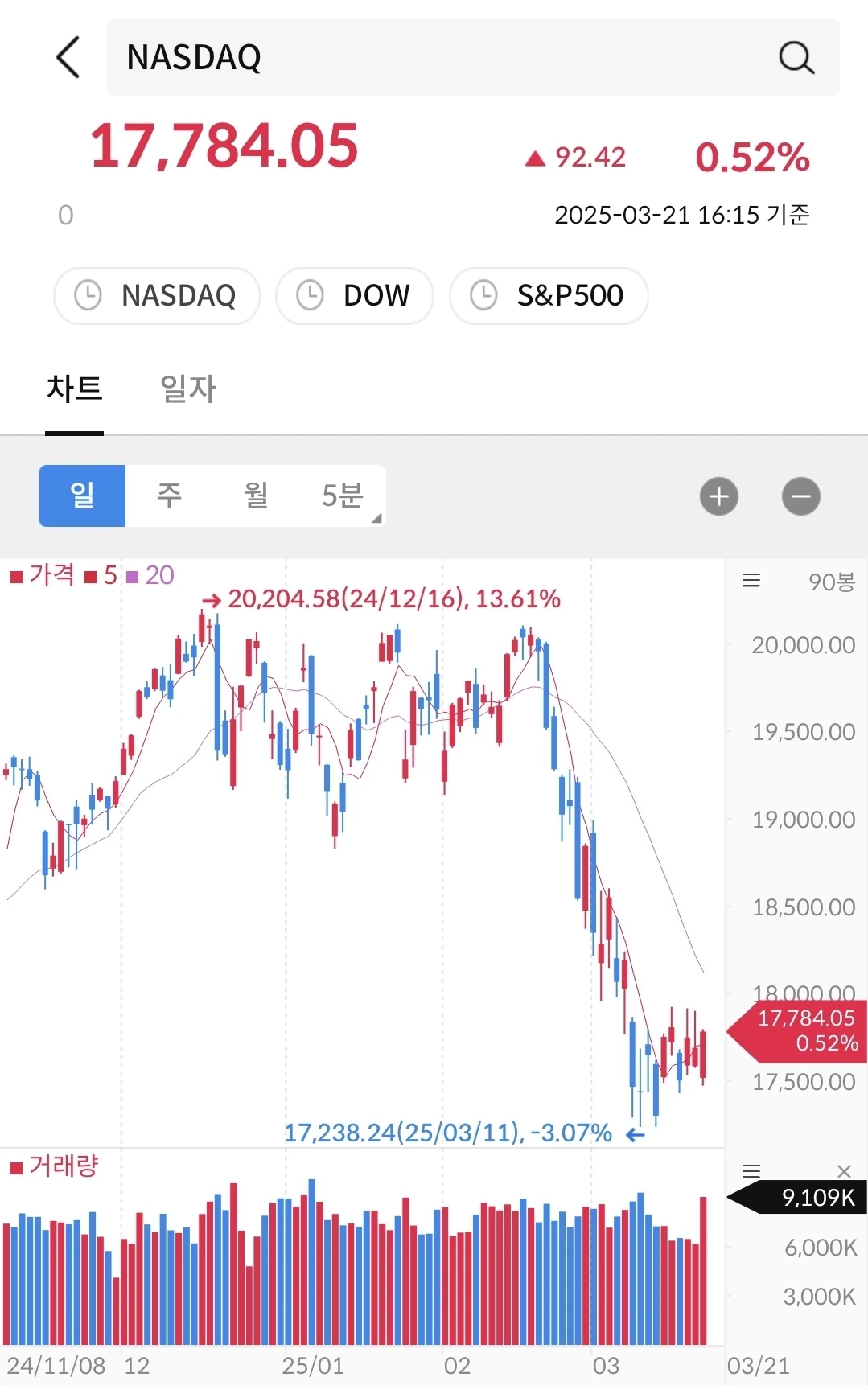 큰 폭의 하락이 있었으나, 지난 3/13일 이후부터는 상승 추세이다.