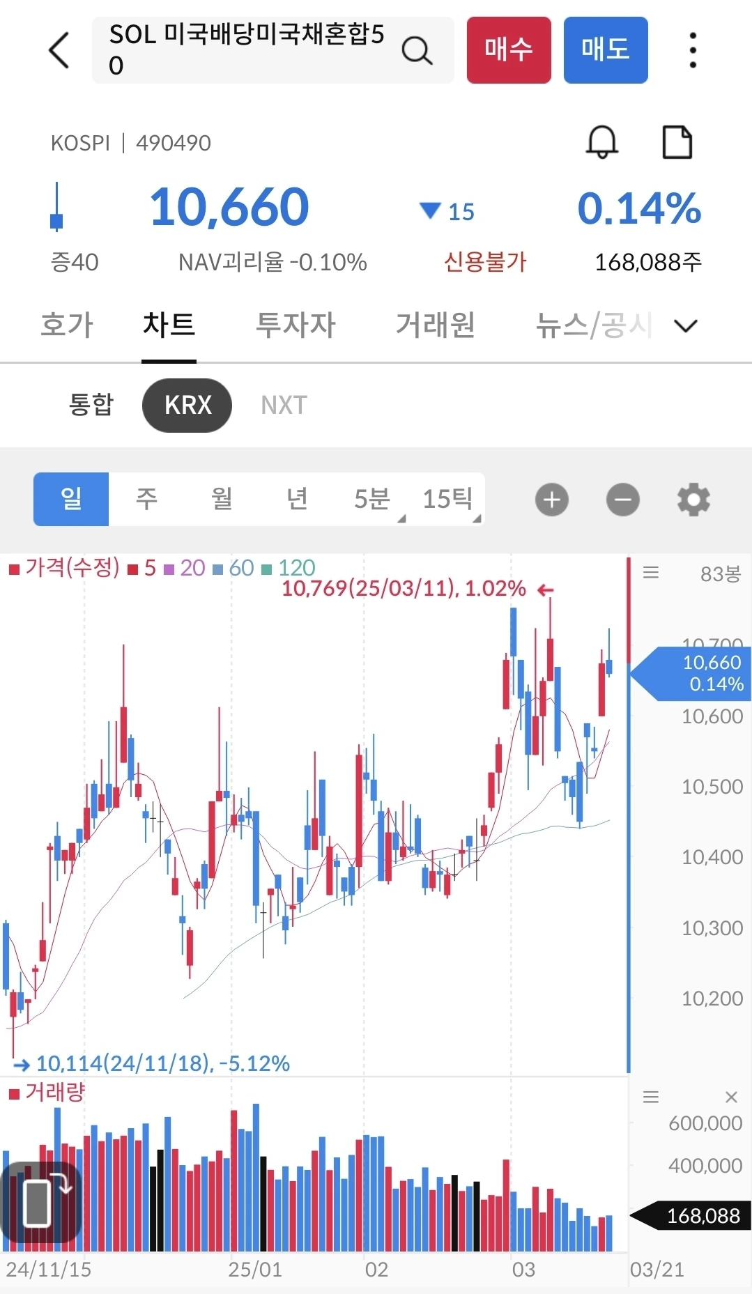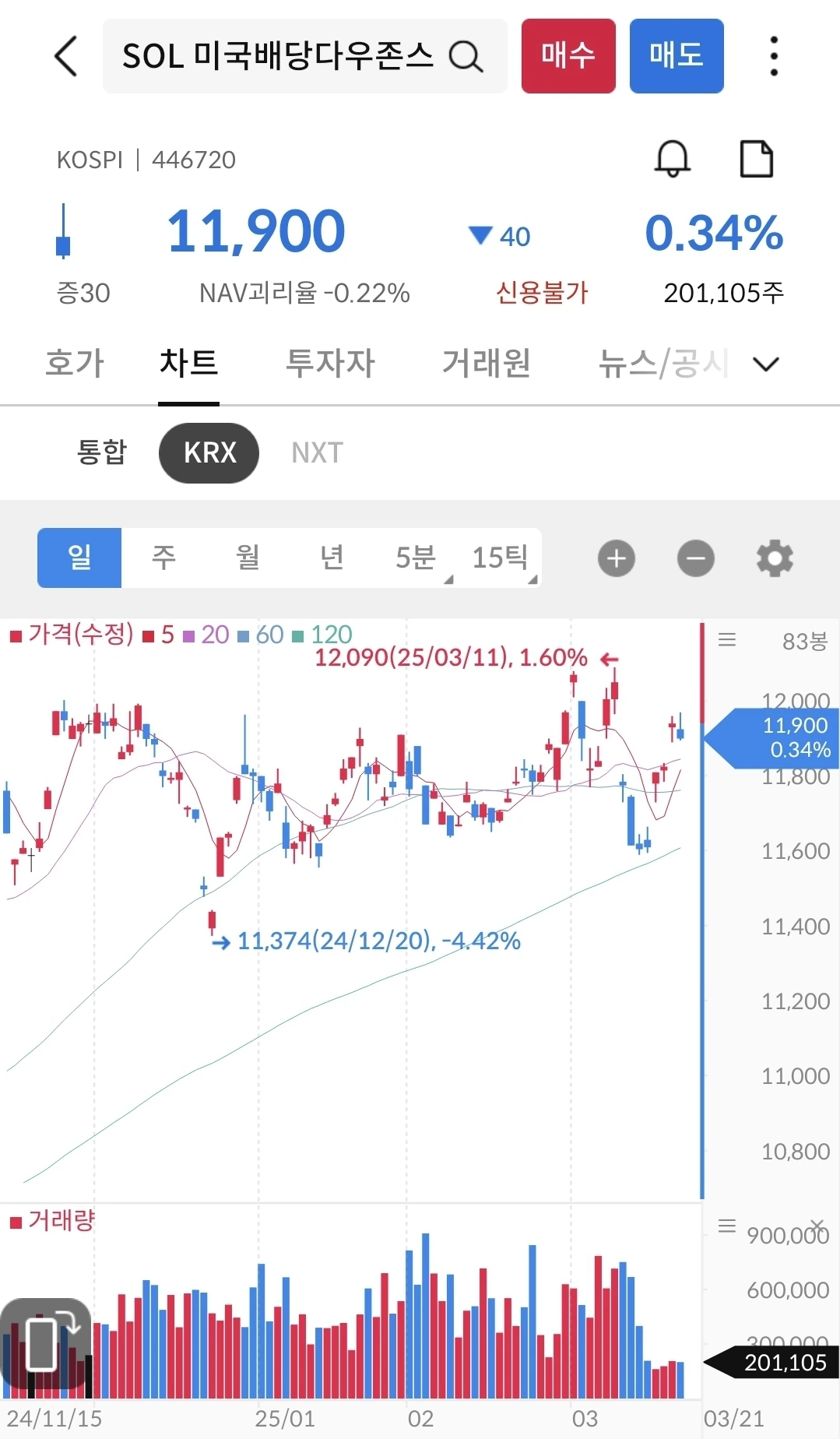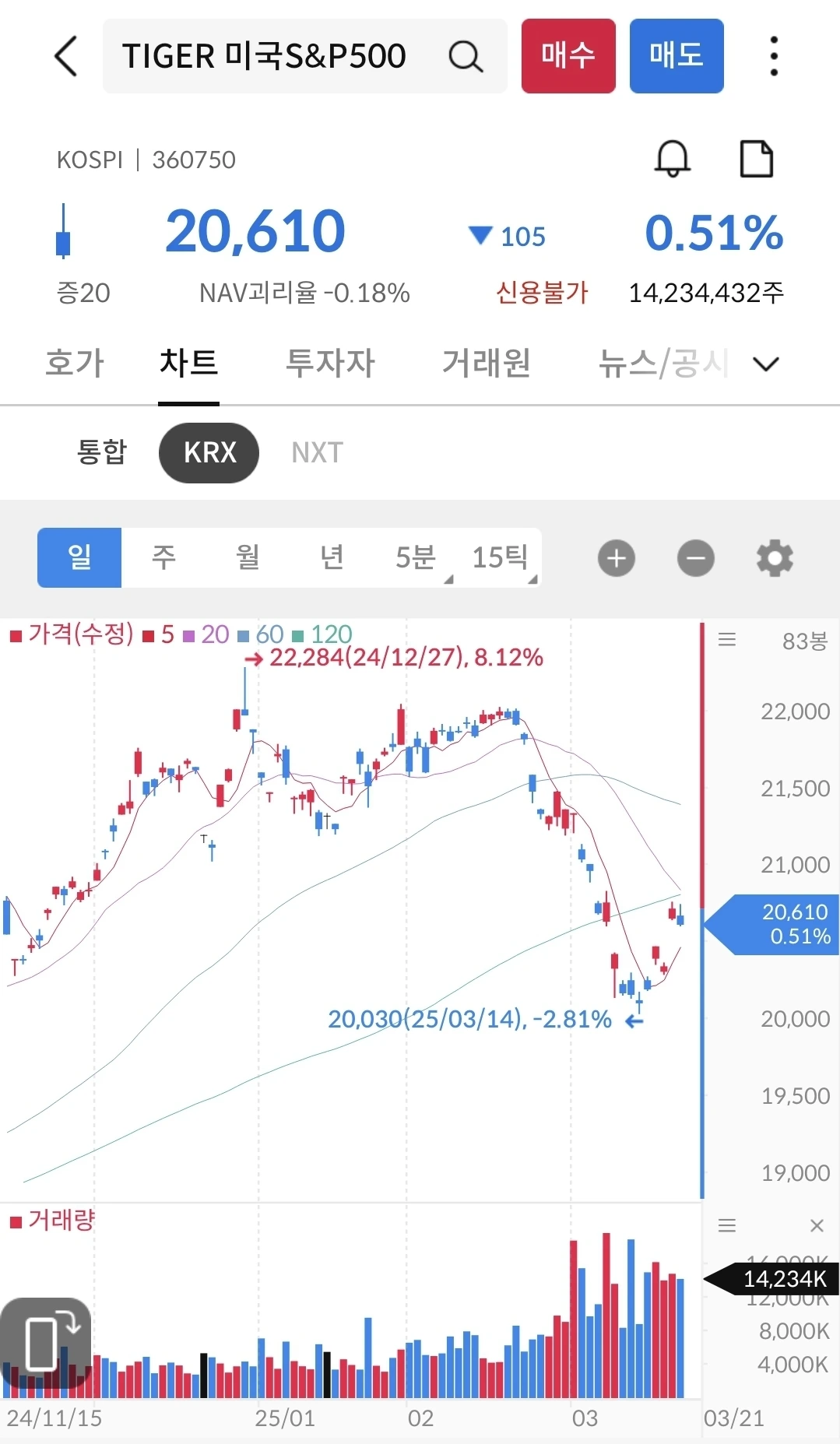 큰 폭으로 하락하지 않고 등락을 반복하면서 우상향 중이다. 평소에 사던 대로 꾸준히 사모으면 될 듯하다.