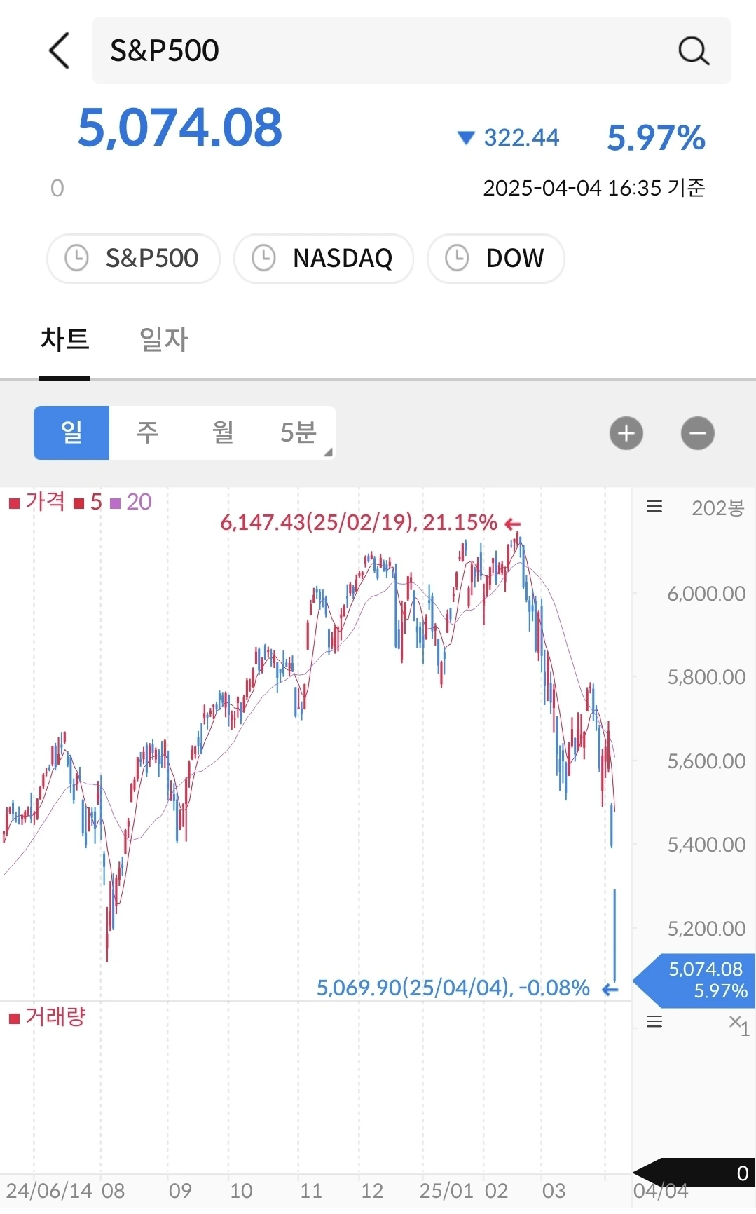 S&P500과 동일한 상황이다.