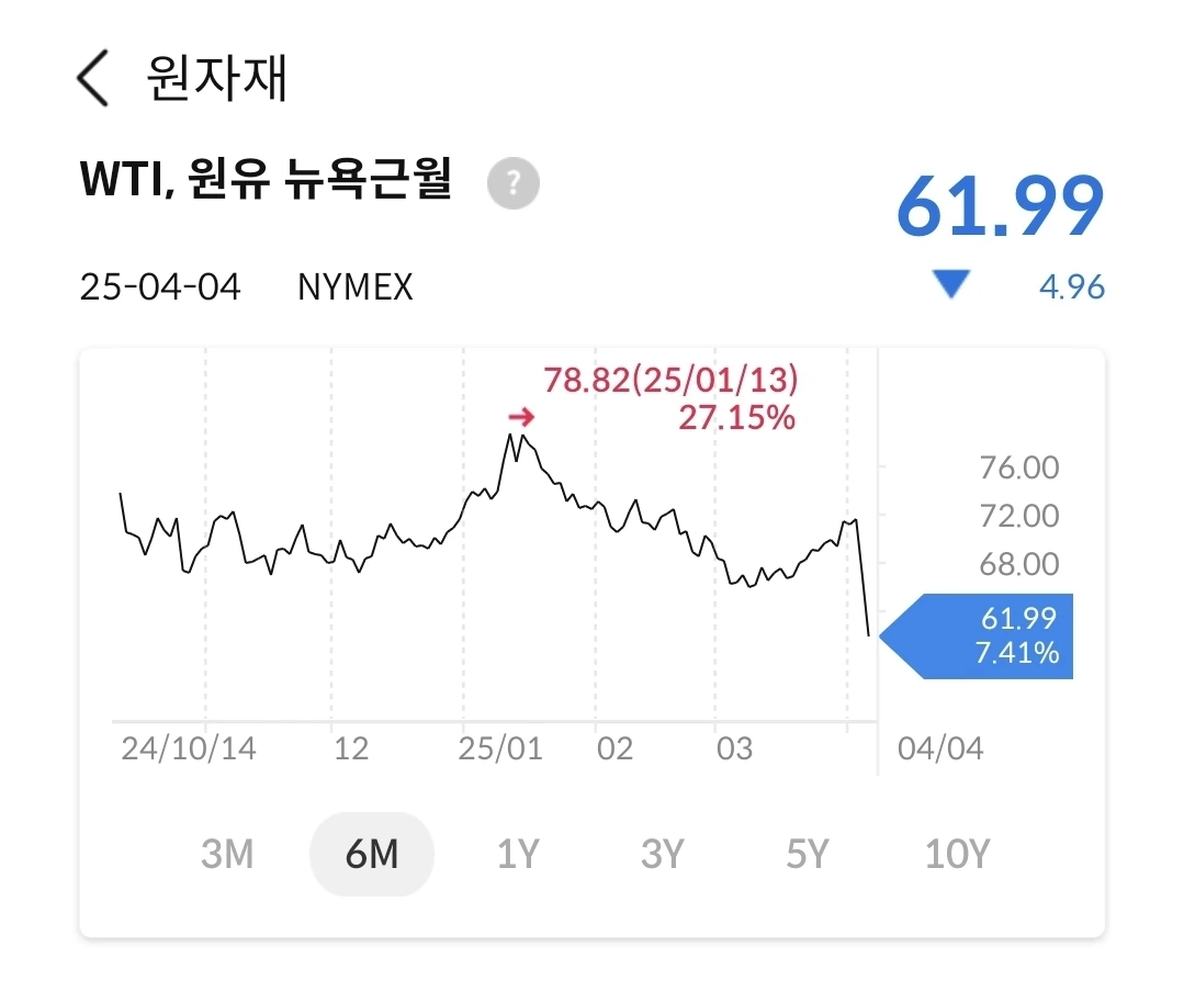 경기침체 가능성에 따른 소비 감소와 OPEC+ 회원국의 증산 영향으로 수직 급강하했다. 60불대 초반까지 내려 갔다. 하루에 거의 7%가 하락했다. 경제일기 쓴 후에 이렇게 큰 폭으로 하락한 경우는 없는 듯 하다. 물론 3대 지수도 마찬가지이다. 5% 이상 하락하다니.