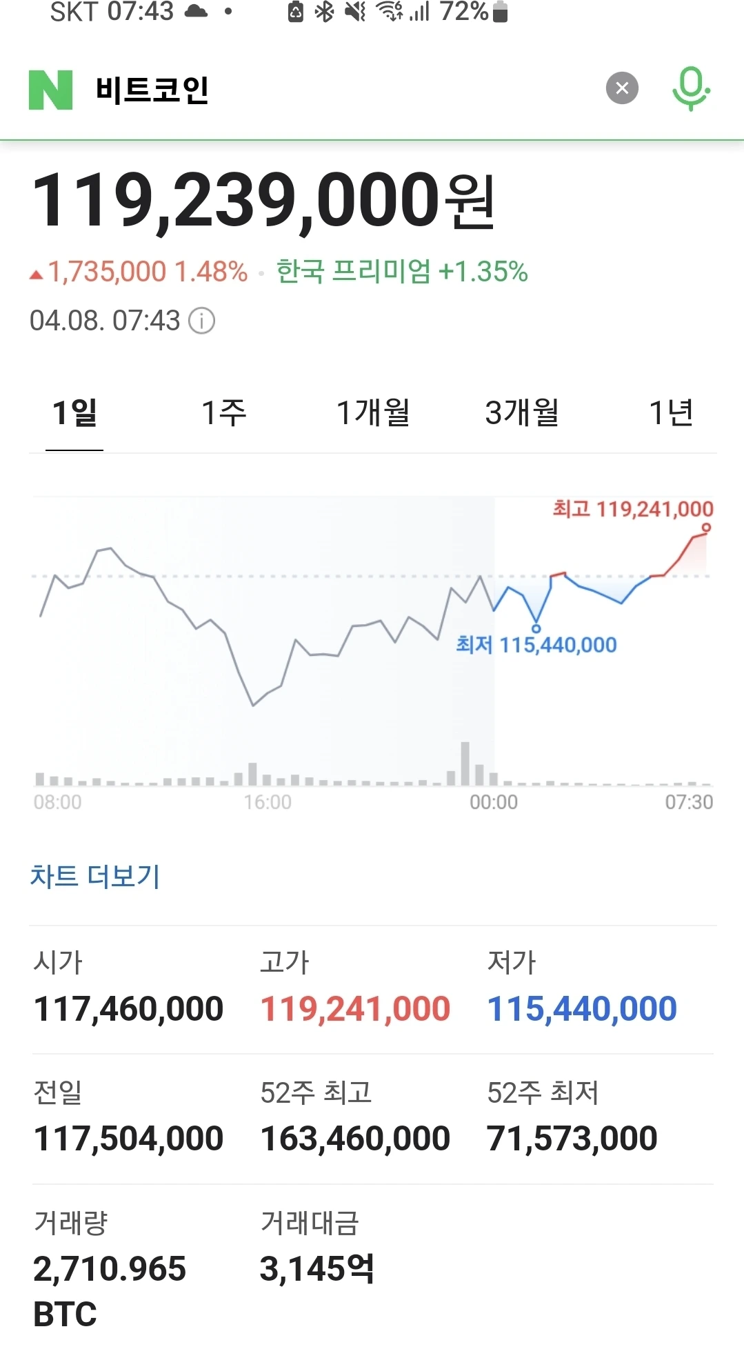 1억 18백만원대 올라