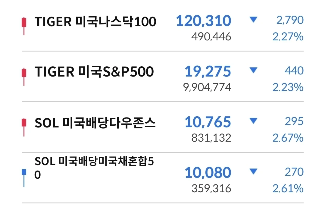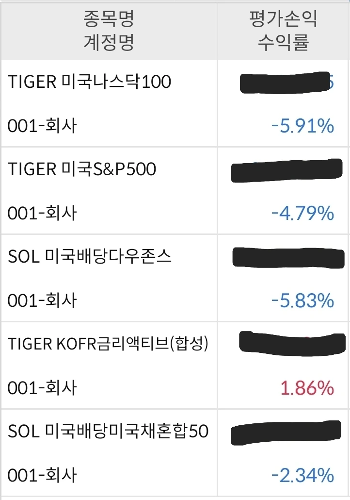 연금투자는 잃지 않는 것이 목표였는데, 이번 주에 많이 무너졌다. 이렇게 무너지는 것은 자주 있는 일이 아닌데, 전체 종목이 모두 마이너스 수익률이다. 그나마 다행인 것은 지난 주에 비해서 많이 회복했다는 것이다. 분할 매수를 다른 주에 비해서 많이 한 것도 있고, 다시 상승으로 전환된 것도 있다.