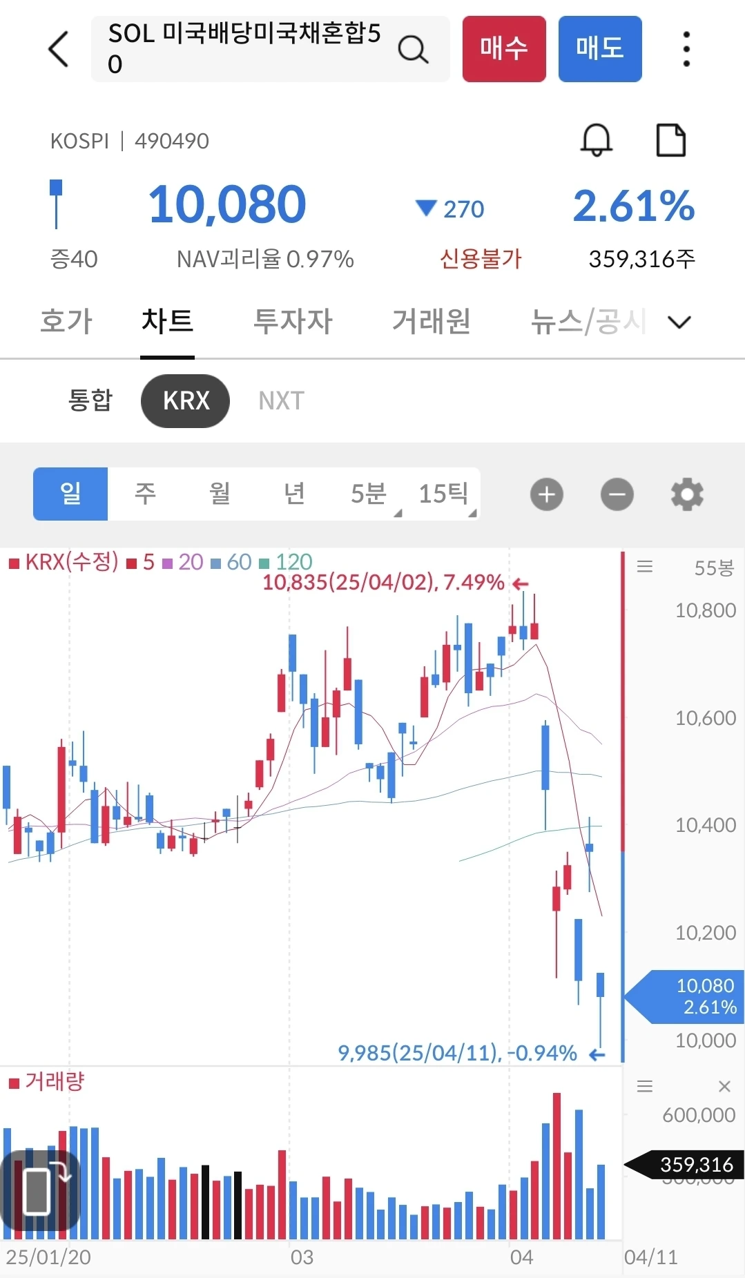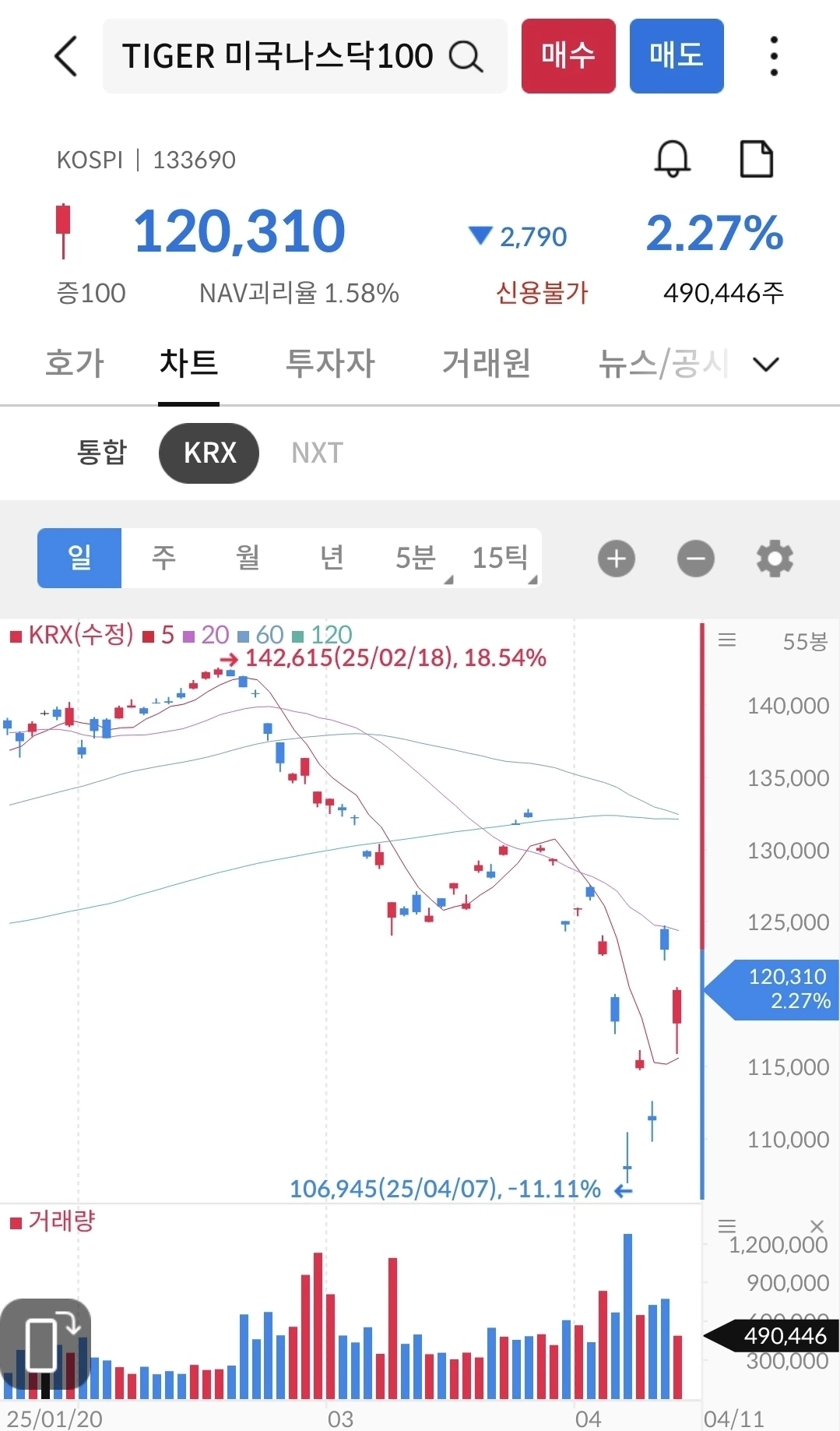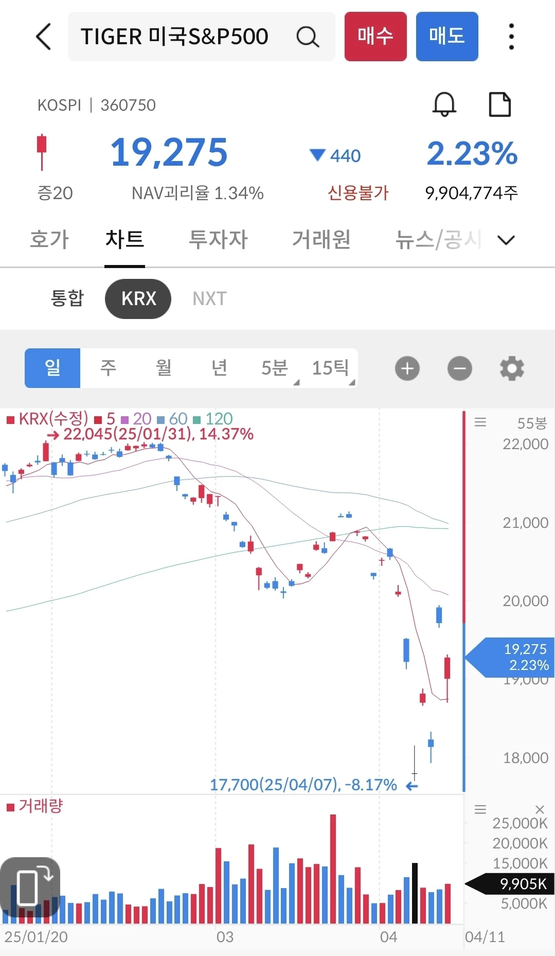 4월 7일에 8.17% 하락했다가 다시 상승하는 중이다. 방향은 상승이 맞다. 지켜 보자.