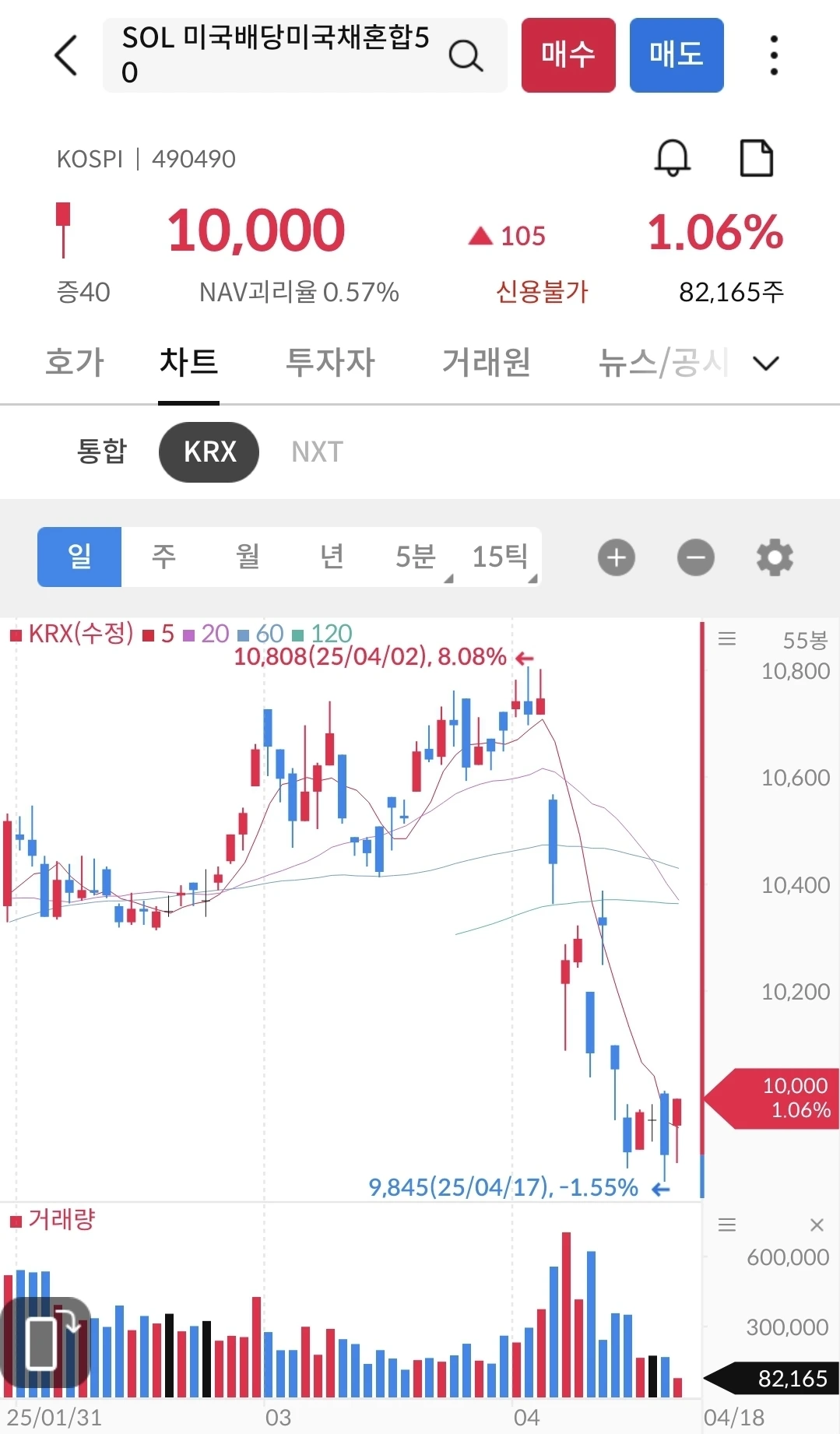 이번 주에는 상장 가격인 만원이하로 내려갔었다. 분할매수로 매수 진행했다.