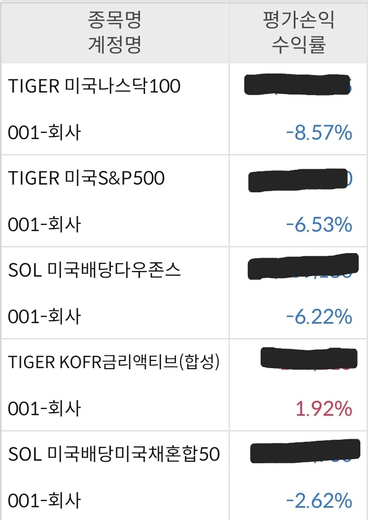 연금계좌는 파란색에서 빠져 나오지 않고 있다. 위기는 기회라서 다른 시기보다 좀 더 줍줍하는 중이다. 이번 주에도 다른 주에 비해서 더 줍줍해서 평단가를 낮추고 있다. 환율도 등락이 심하다가 보니 미국 지수 추종 ETF는 더 영향을 많이 받고 있다.