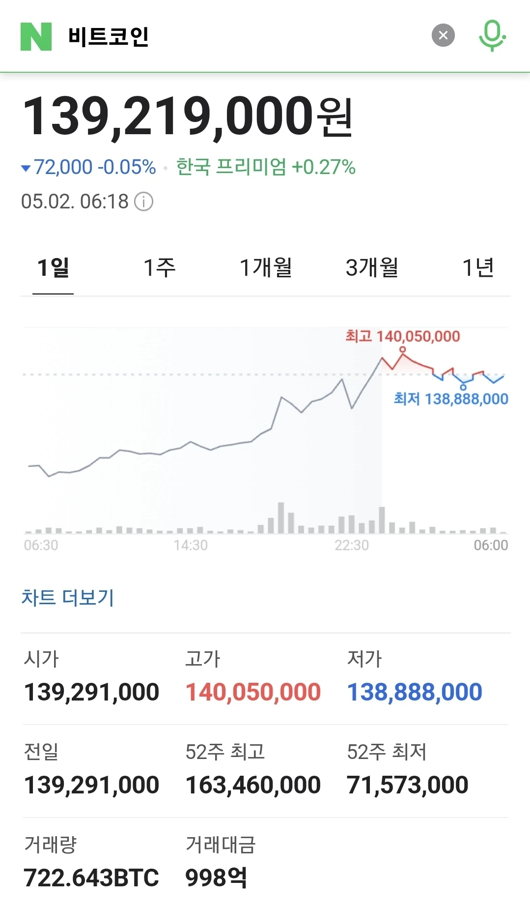 비트코인, 1억39백만원대 돌파