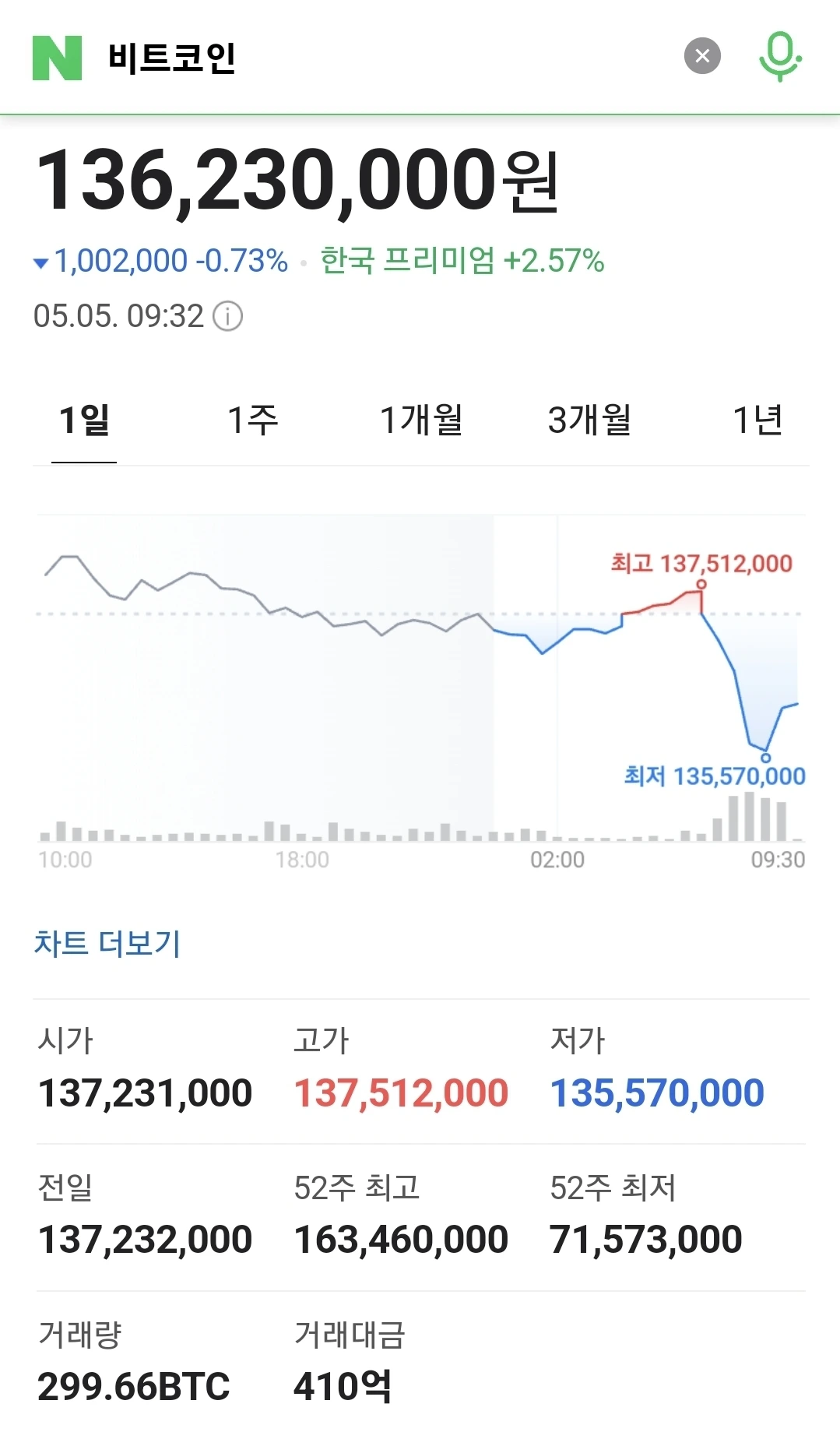 지난달 1억1천까지 하락 했지만