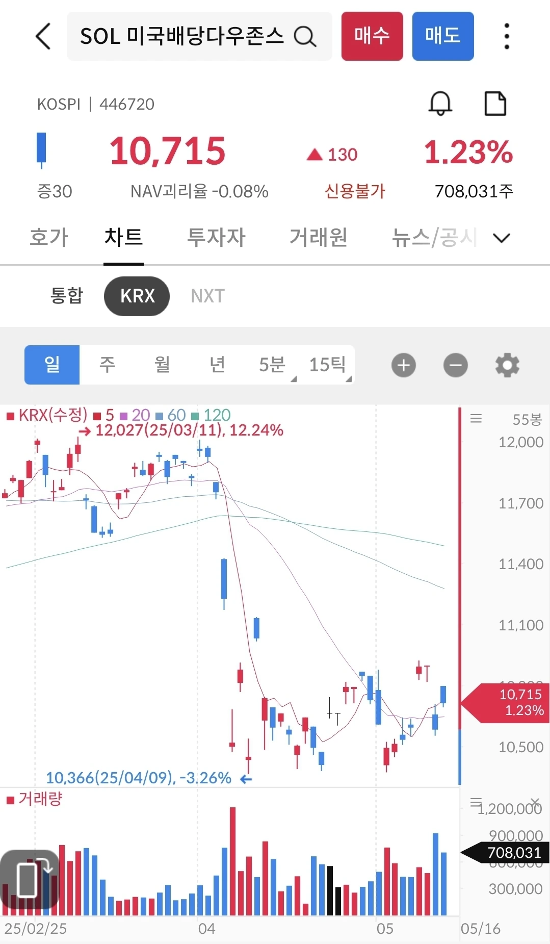 미국배당주를 포함해서 그런지 좀처럼 반등되지 않고 있다. 당분간 현재 패턴을 가져 간다고 하면 조금씩 분할 매수의 시기가 아닐까 생각되어 조금씩 모아 가는 중이다. 다우존스 비중은 10% 선이라서 크게 가져가지는 않고 있다.