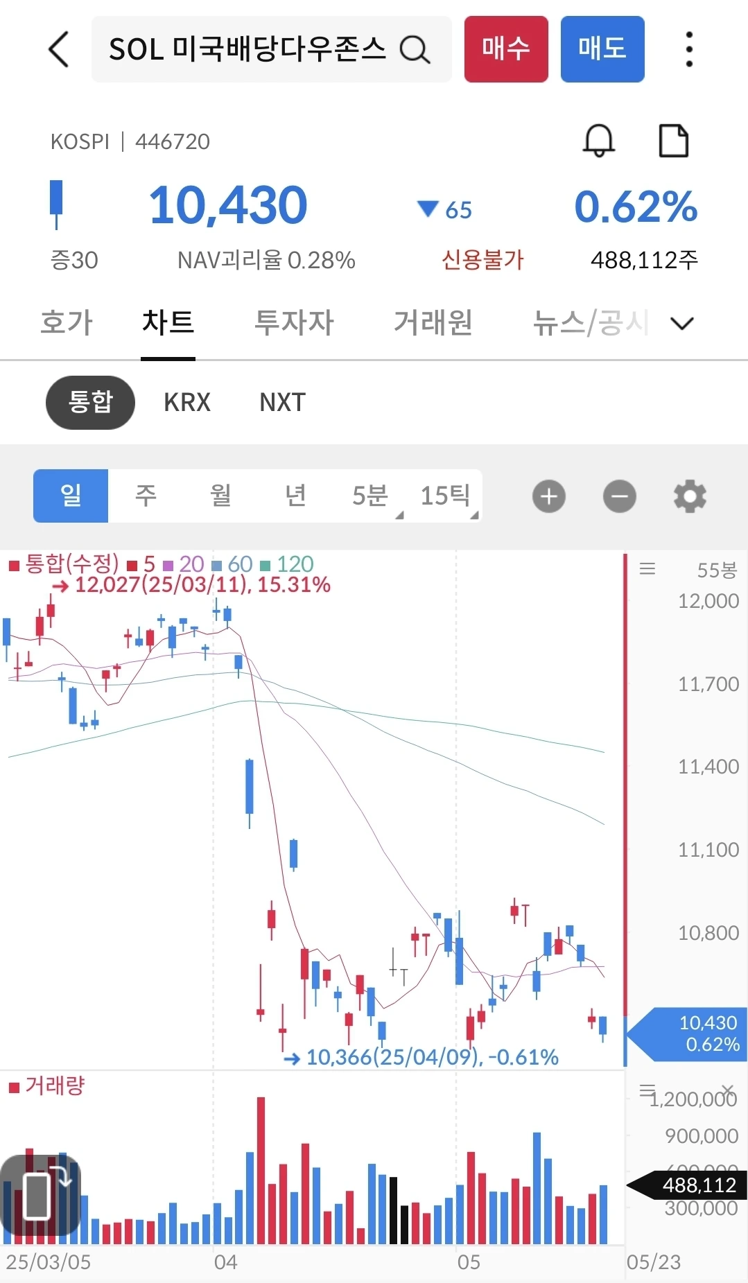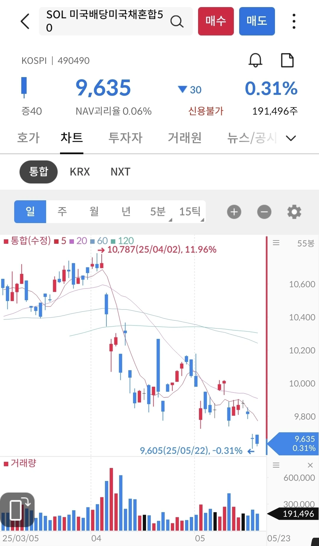생각보다 정말 많이 하락 했다. 9600원대까지 내려갈 줄은 몰랐다. 지금도 하락 중이다. 지금이 분할매수의 기회라 생각하면서 평소보다 조금 더 사는 중이다.