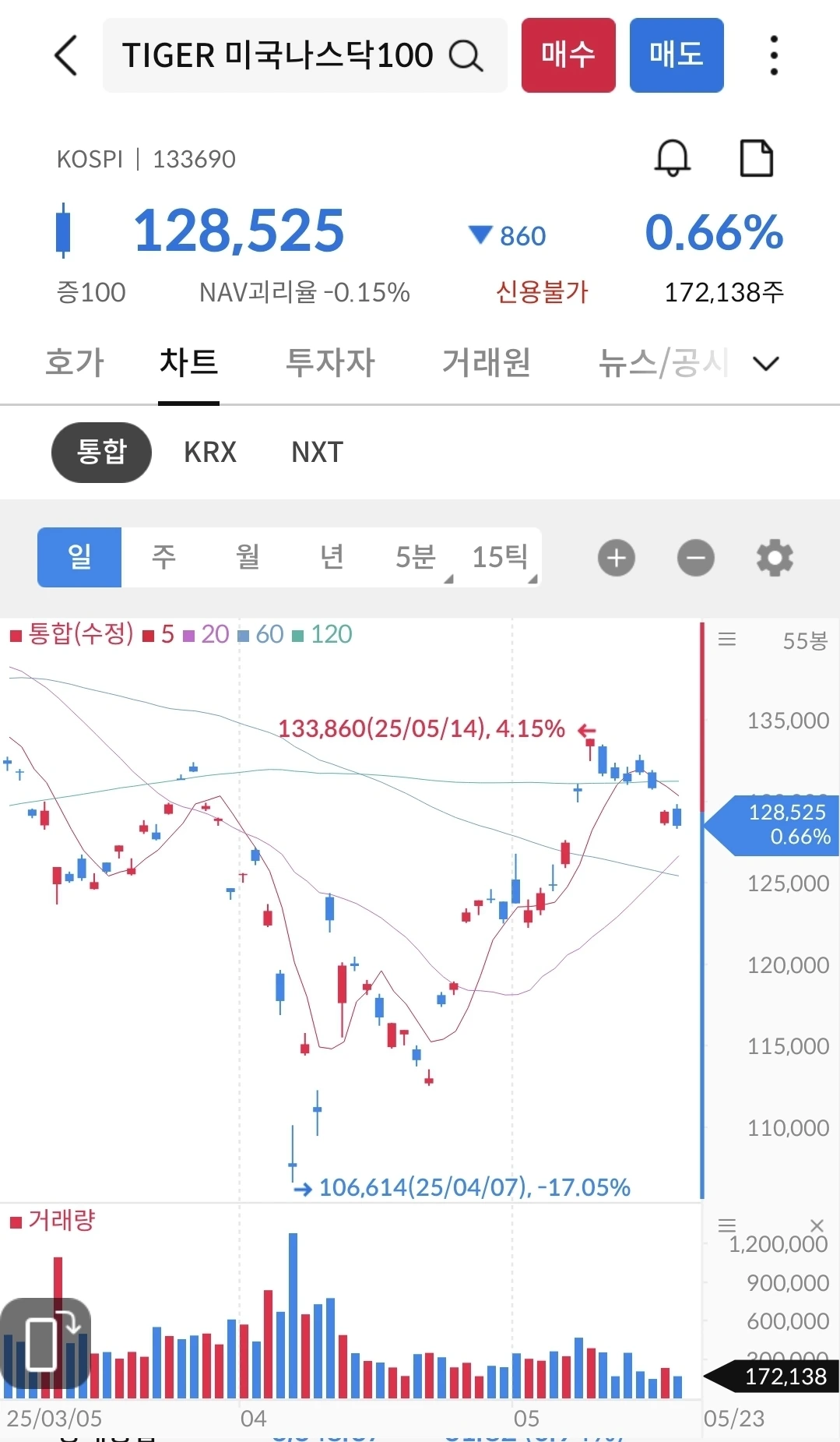 나스닥 지수와 동일한 패턴으로 움직이는 중이다.