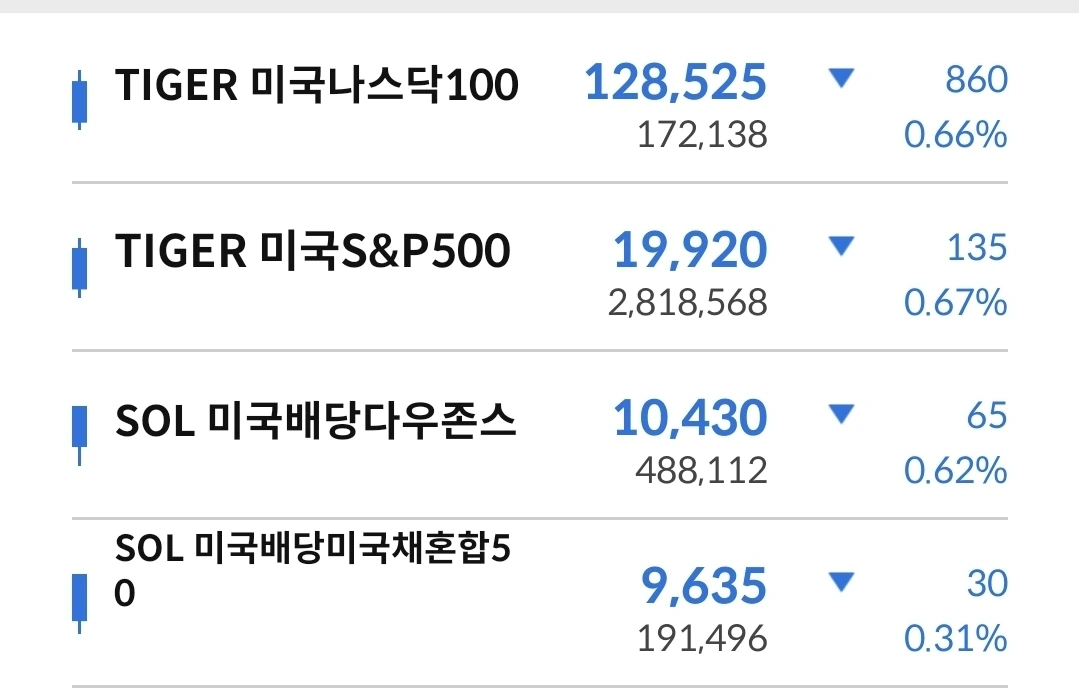 다우존스와 미국채에서 크게 마이너스가 나서 집중 분할 매수 중이다. 몇주전에 나스닥과 S&P500에서 본 숫자이다. 이제는 반대의 현상인데 이렇게 될 수도 있구나. 지금은 지속적으로 분할매수 하면서 시장을 지켜보는 것이 중요하다. 시장은 생물과 같이 꾸준이 움직이는 중이다.