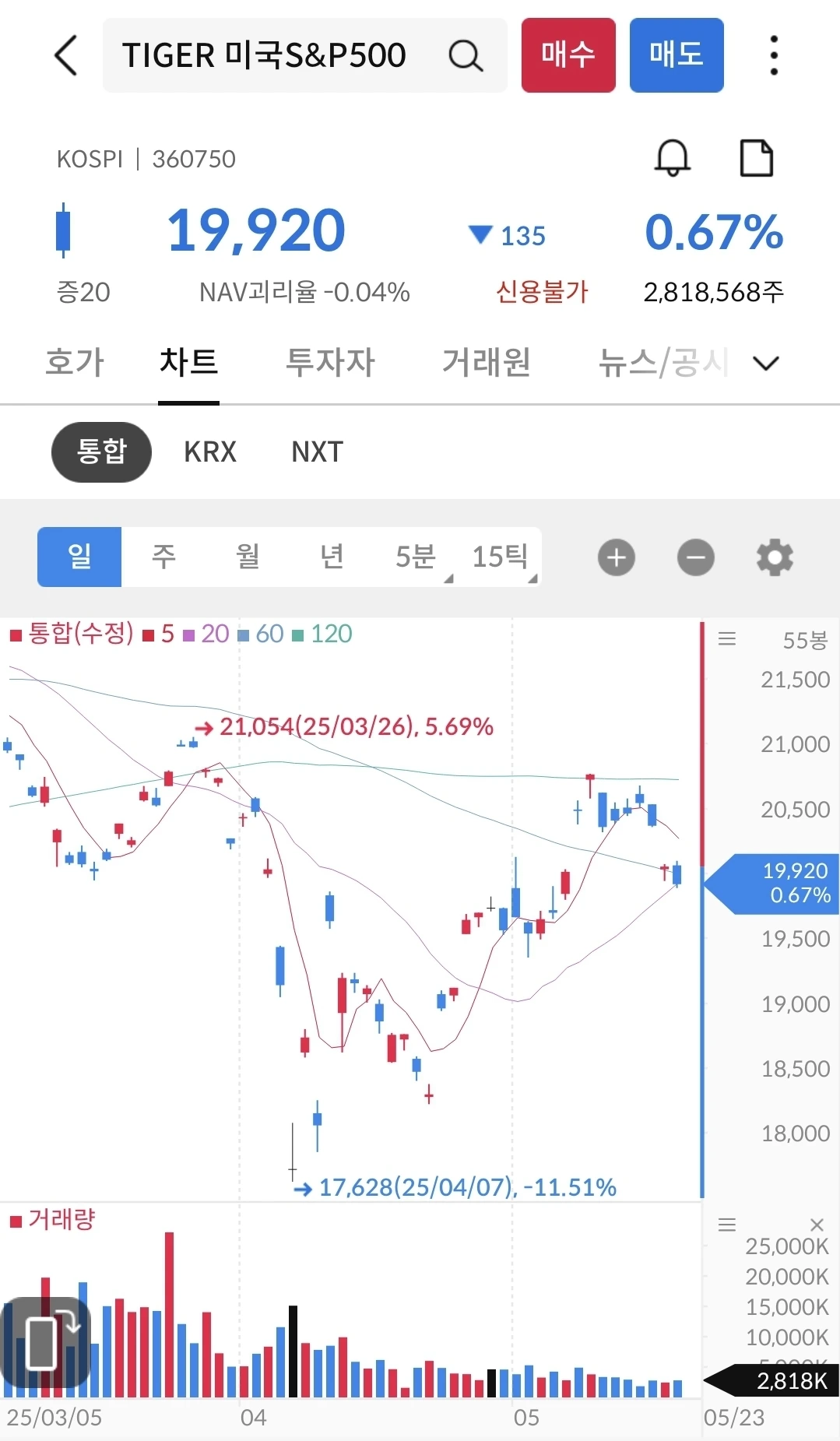 4월 급락 후에 반등의 여지가 보이지 않고 소폭 등락을 반복 중이다. 지금이 매수의 기회라고 생각하면서 매주 분할 매수 진행 중이다.