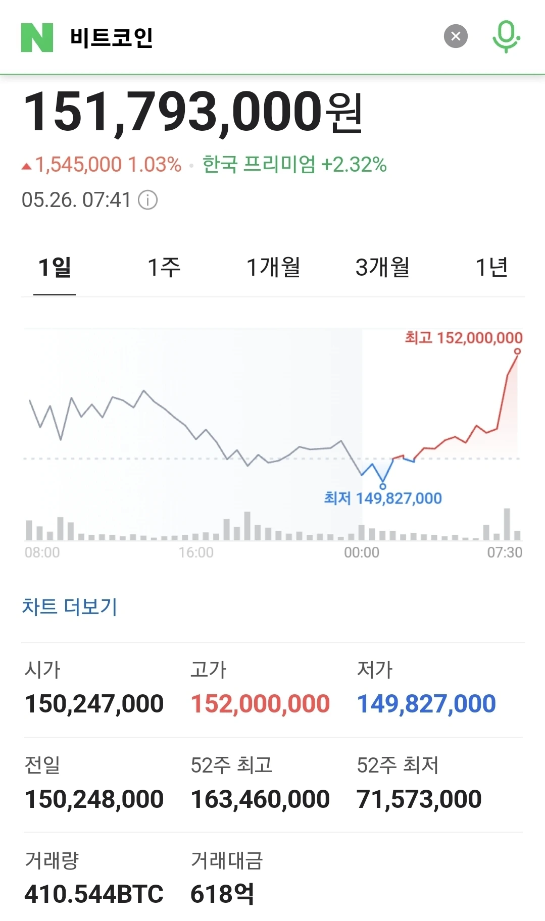 3) 국내 1억 52백만원대, 투심 탐욕단계 유지